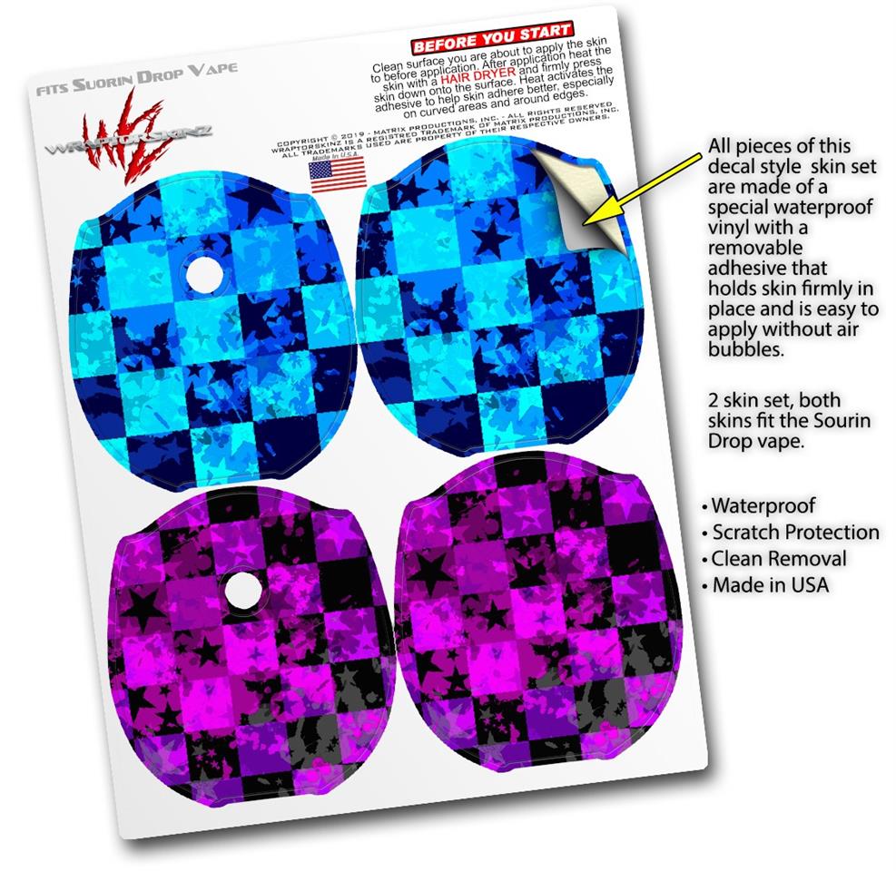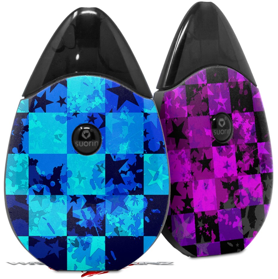 Skin Decal Wrap 2 Pack compatible with Suorin Drop Blue Star Checkers VAPE NOT INCLUDED