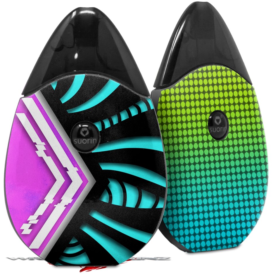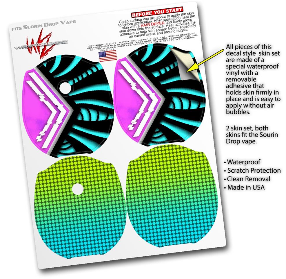 Skin Decal Wrap 2 Pack compatible with Suorin Drop Black Waves Neon Teal Hot Pink VAPE NOT INCLUDED