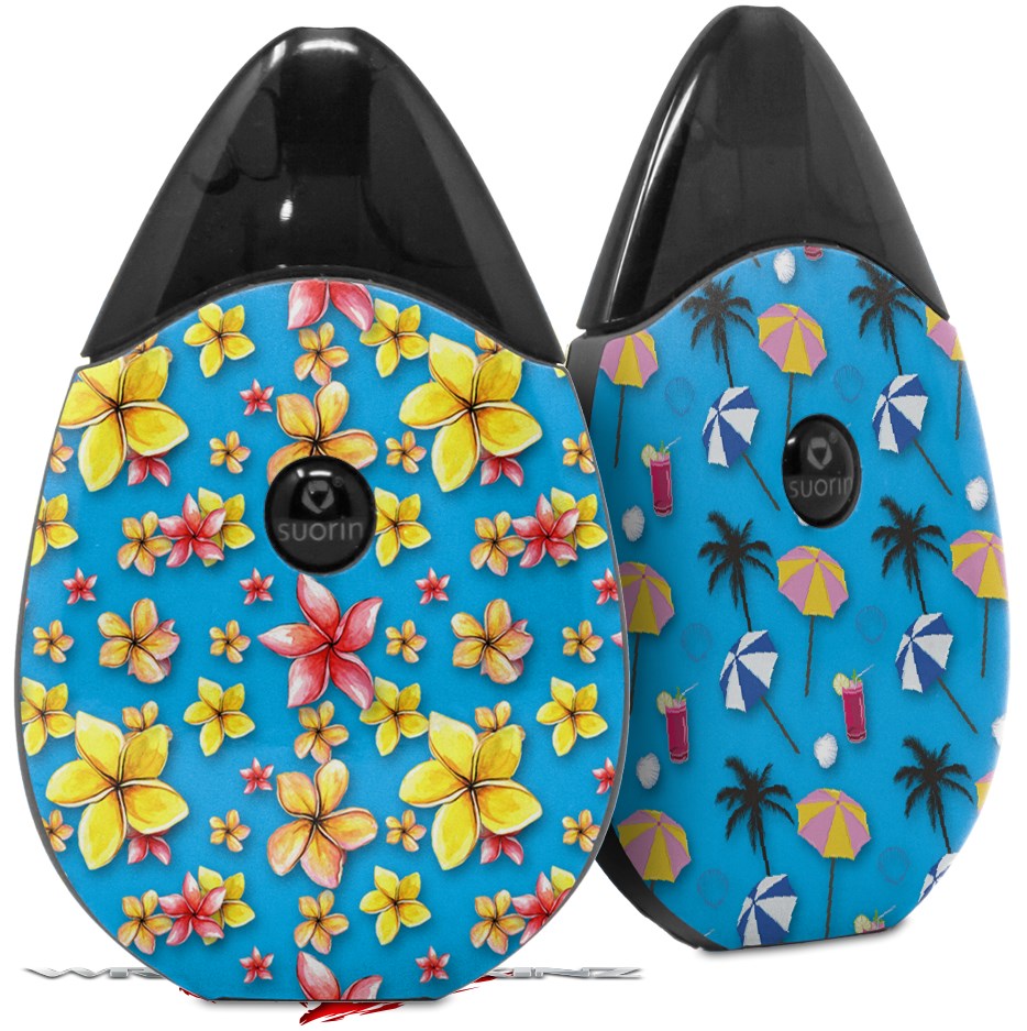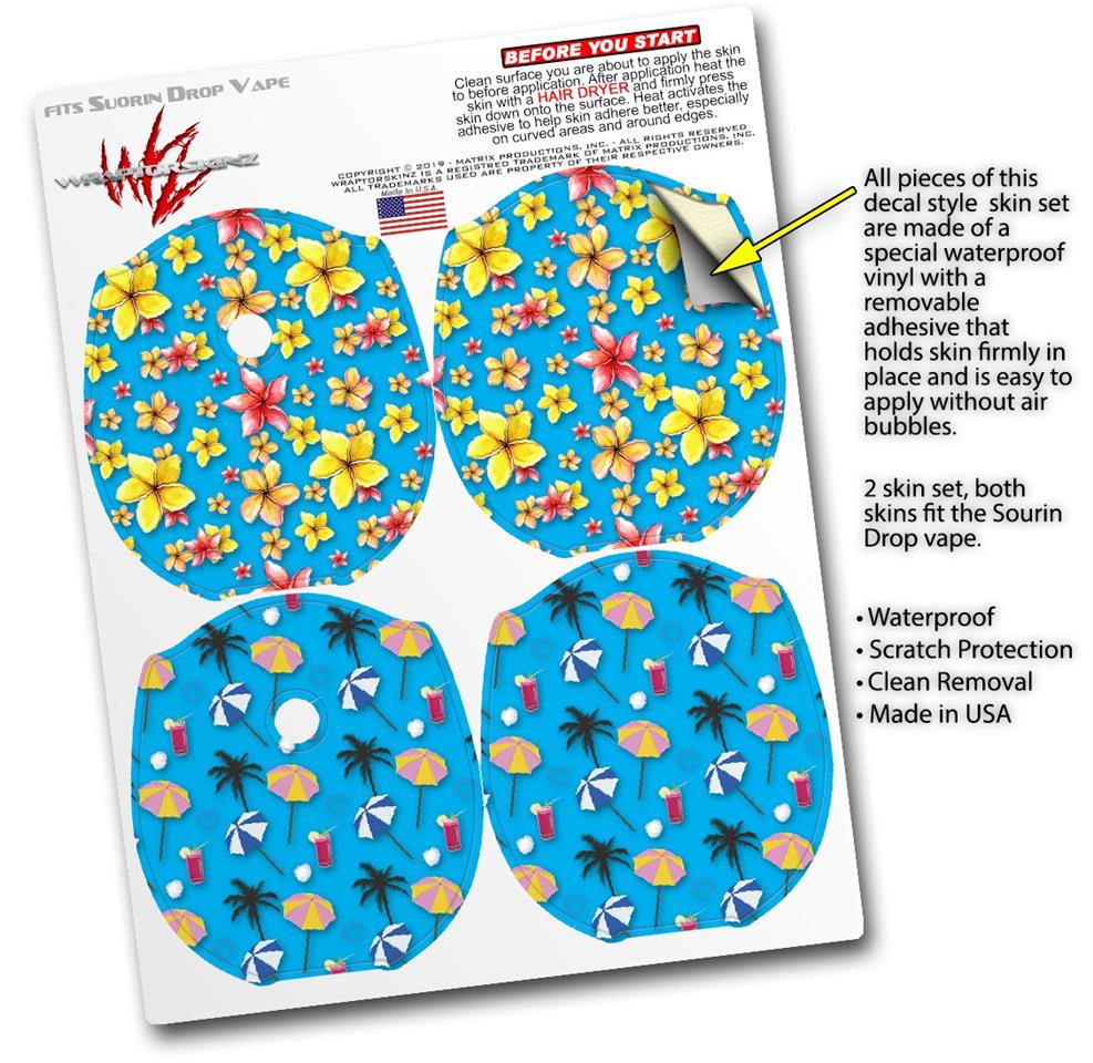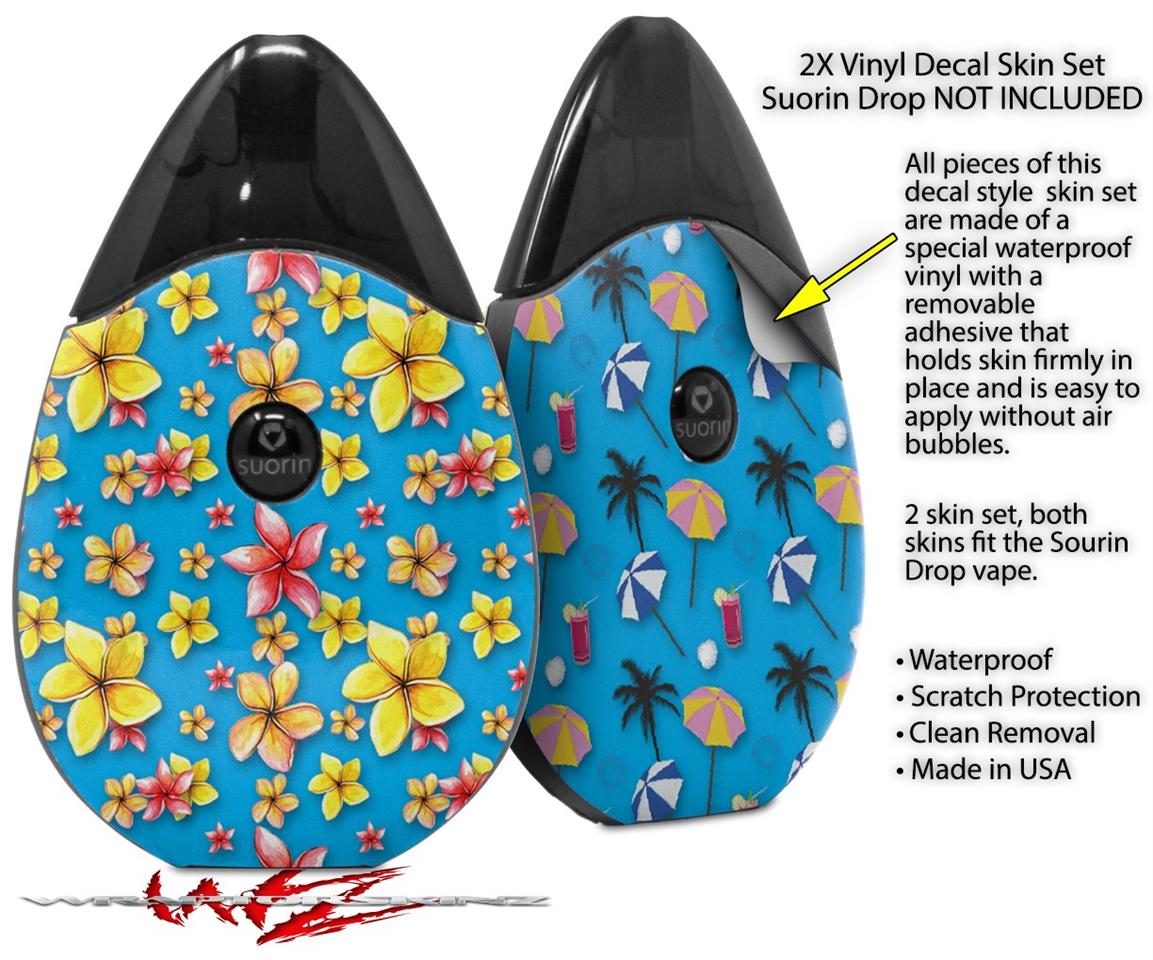 Skin Decal Wrap 2 Pack compatible with Suorin Drop Beach Flowers Blue Medium VAPE NOT INCLUDED