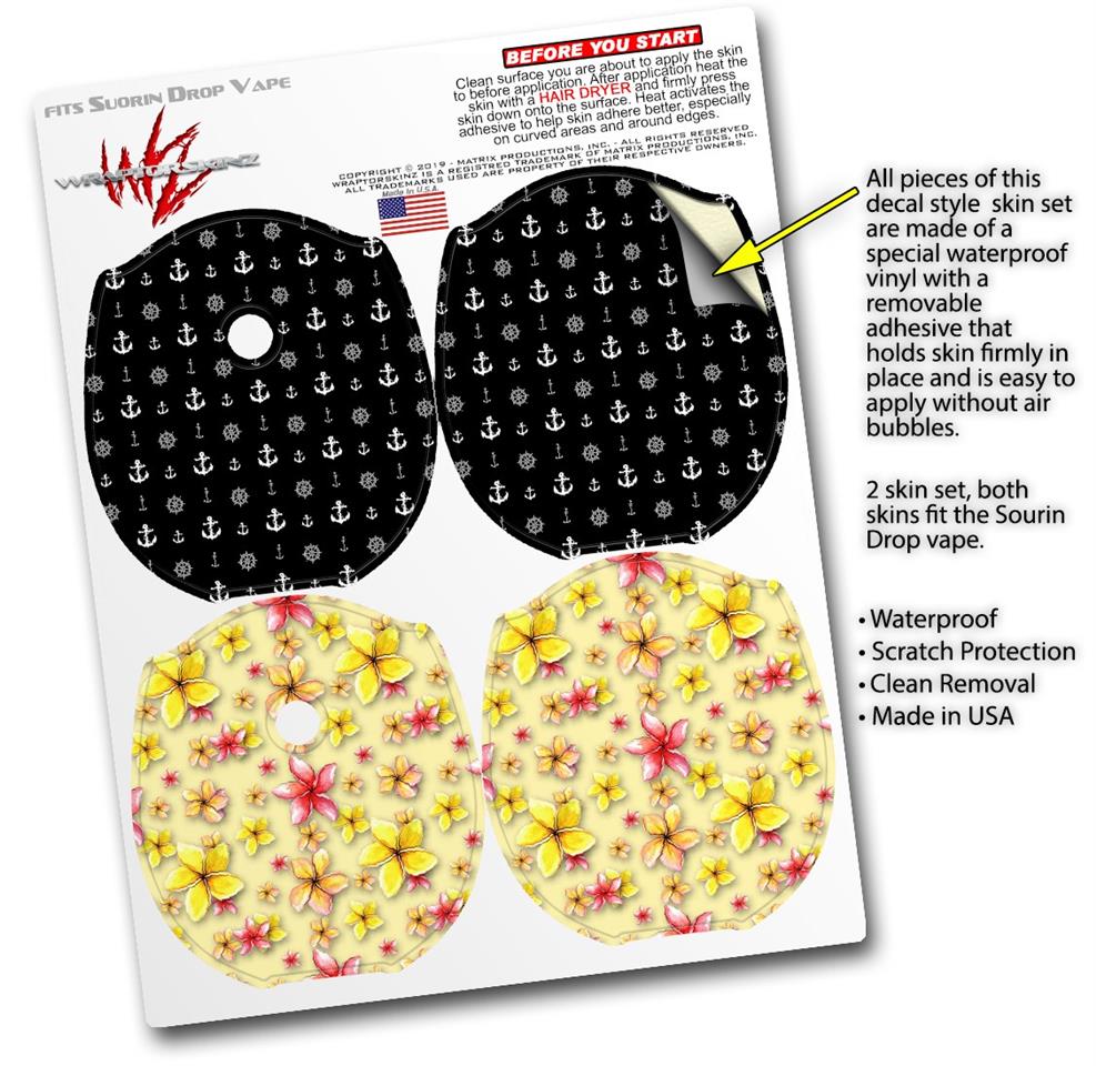 Skin Decal Wrap 2 Pack compatible with Suorin Drop Nautical Anchors Away 02 Black VAPE NOT INCLUDED