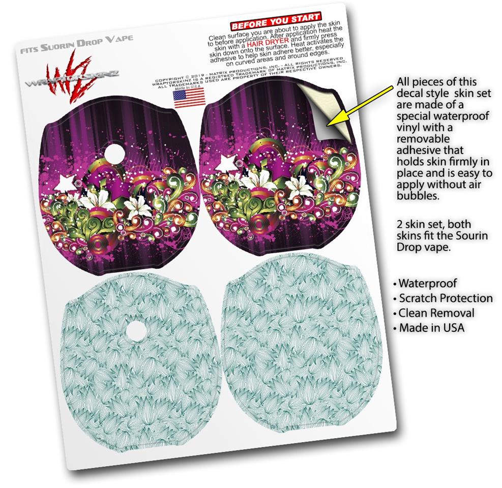 WraptorSkinz® skin wraps compatible with Suorin Drop Vape are printed using superb photo quality designs and vibrant colors printed with special fade resistant inks that last even in direct sun for years. WraptorSkinz are a composite of two layers of commercial grade materials. The bottom layer is a soft, flexible vinyl with a special removable adhesive that is easily positioned, applied without air bubbles. Next, we print the bottom layer with UV protected, fade resistant inks that deliver superb photo quality designs in vibrant colors. Finally, we bond a professional grade laminate over the entire skin adding a glossy protective finish. This product is not affiliated with or endorsed by Suorin.