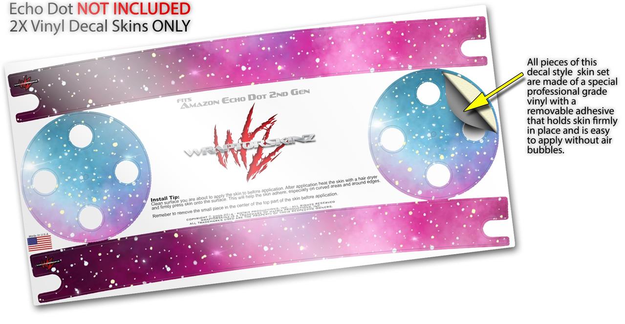 Skin Wrap Decal Set 2 Pack compatible with Amazon Echo Dot 2 Dynamic Pink Galaxy (2nd Generation ONLY - Echo NOT INCLUDED)