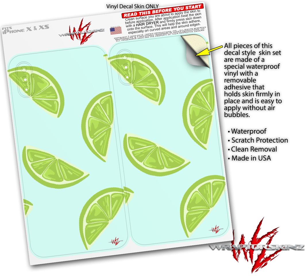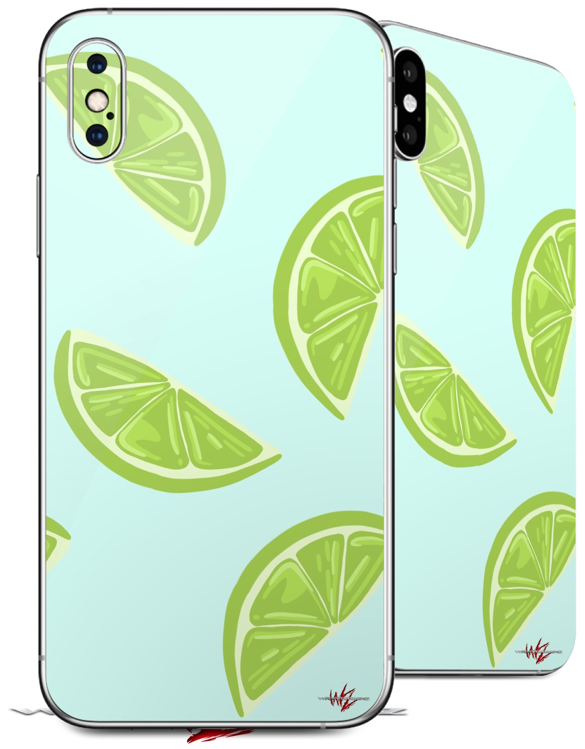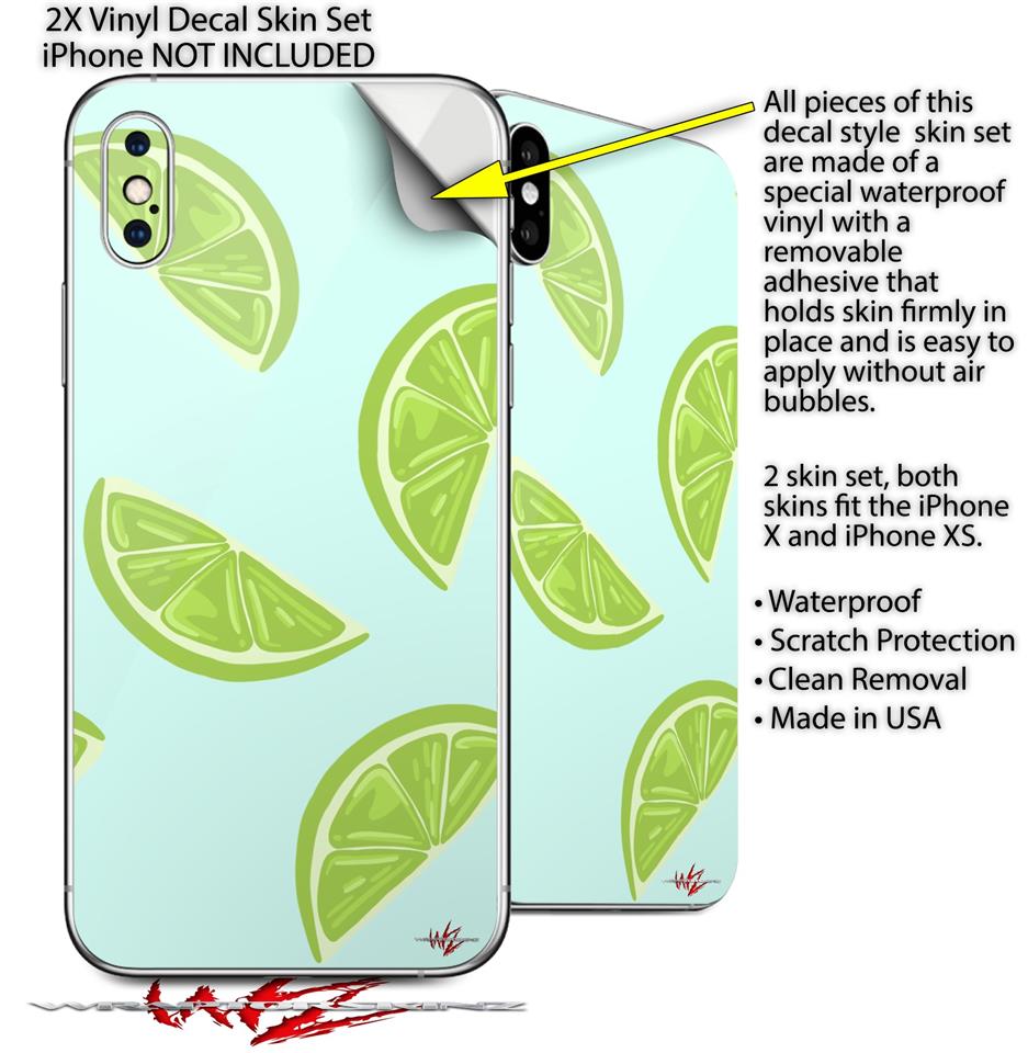 2 Decal style Skin Wraps set compatible with Apple iPhone X and XS Limes Blue