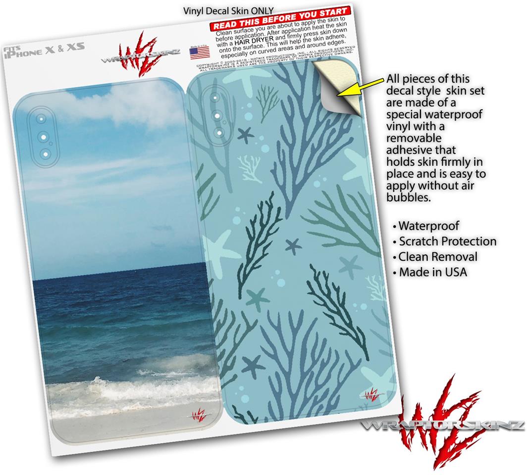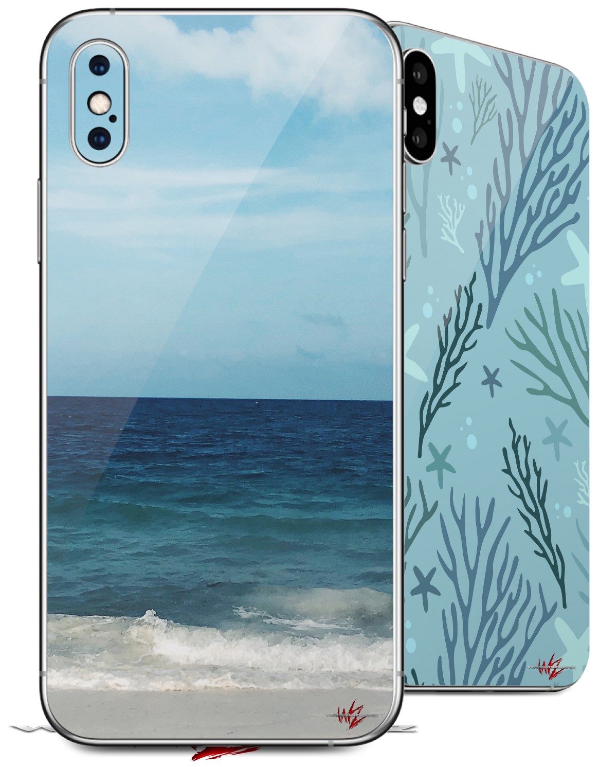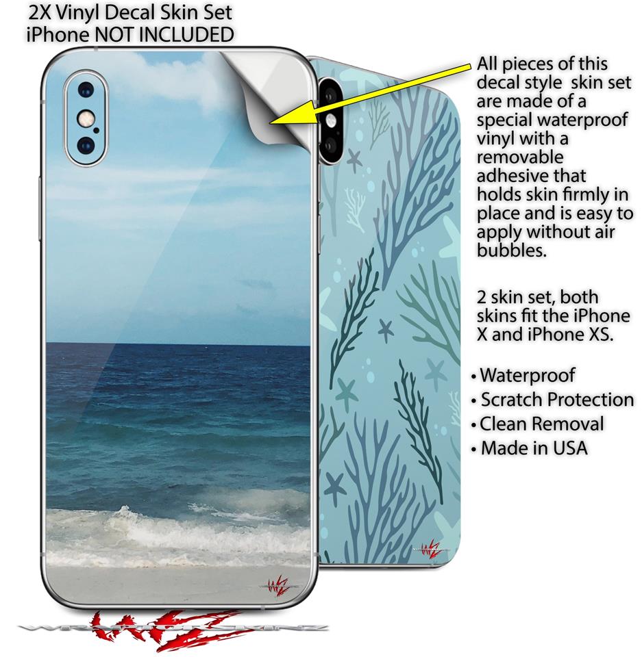2 Decal style Skin Wraps set compatible with Apple iPhone X and XS Ocean View