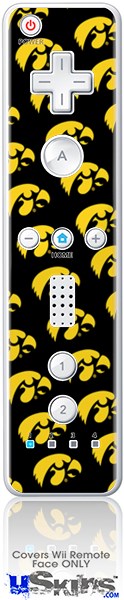 Decal Skin compatible with Wii Remote Controller Face ONLY Iowa Hawkeyes Tigerhawk Tiled 06 Gold on Black