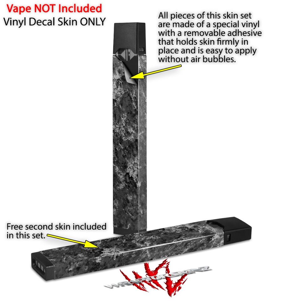 Skin Decal Wrap 2 Pack compatible with Juul Vapes Marble Granite 06 Black Gray JUUL NOT INCLUDED