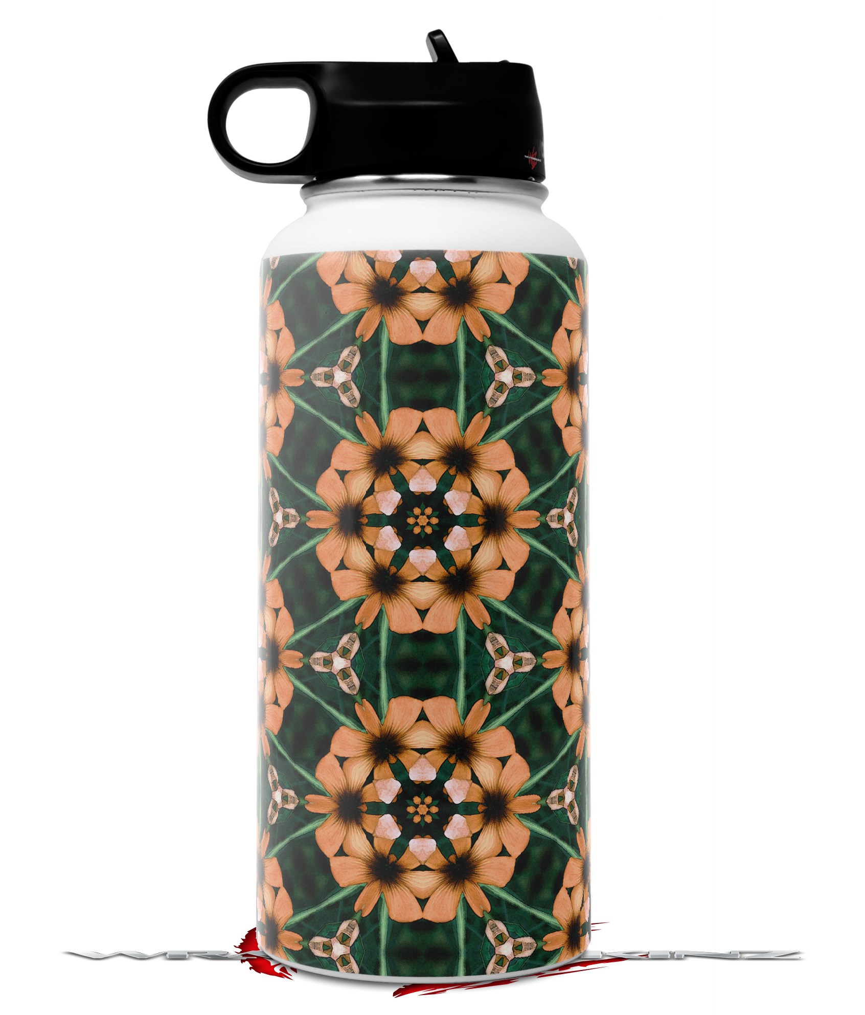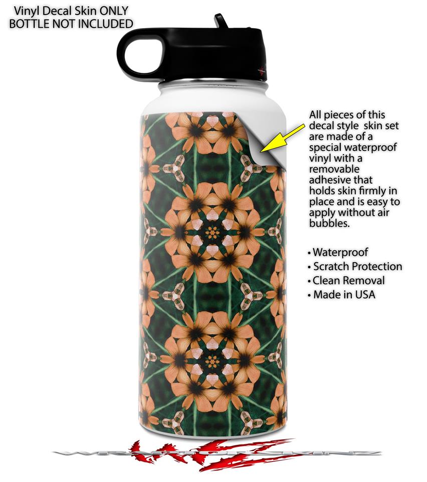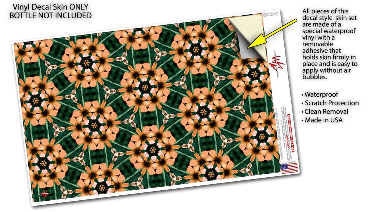 Skin Wrap Decal compatible with Hydro Flask Wide Mouth Bottle 32oz Floral Pattern Orange (BOTTLE NOT INCLUDED)