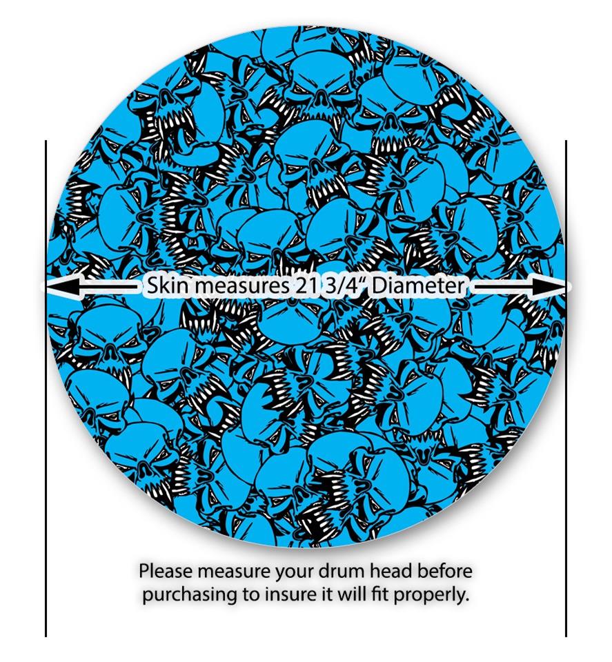 Vinyl Decal Skin Wrap for 22" Bass Kick Drum Head Scattered Skulls Neon Blue - DRUM HEAD NOT INCLUDED