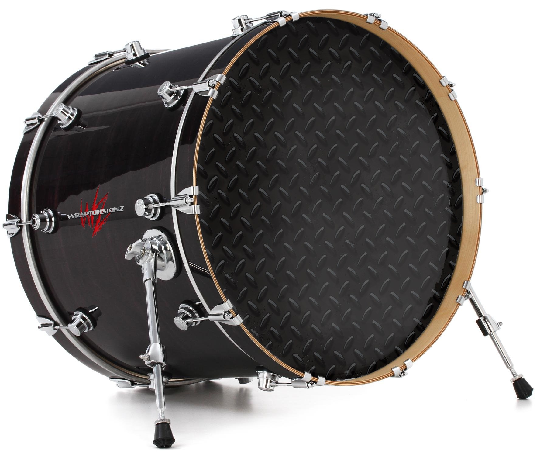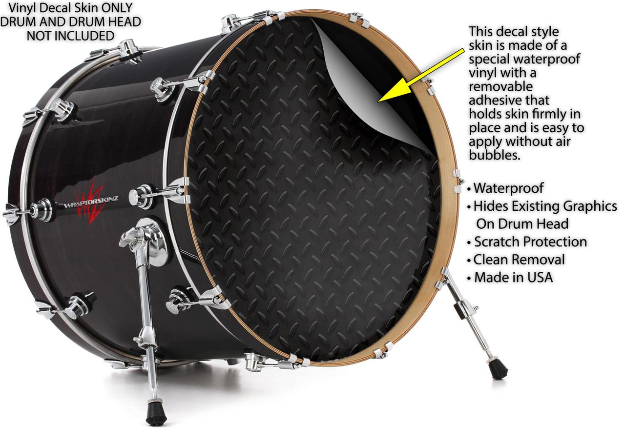Vinyl Decal Skin Wrap for 22" Bass Kick Drum Head Diamond Plate Metal 02 Black - DRUM HEAD NOT INCLUDED