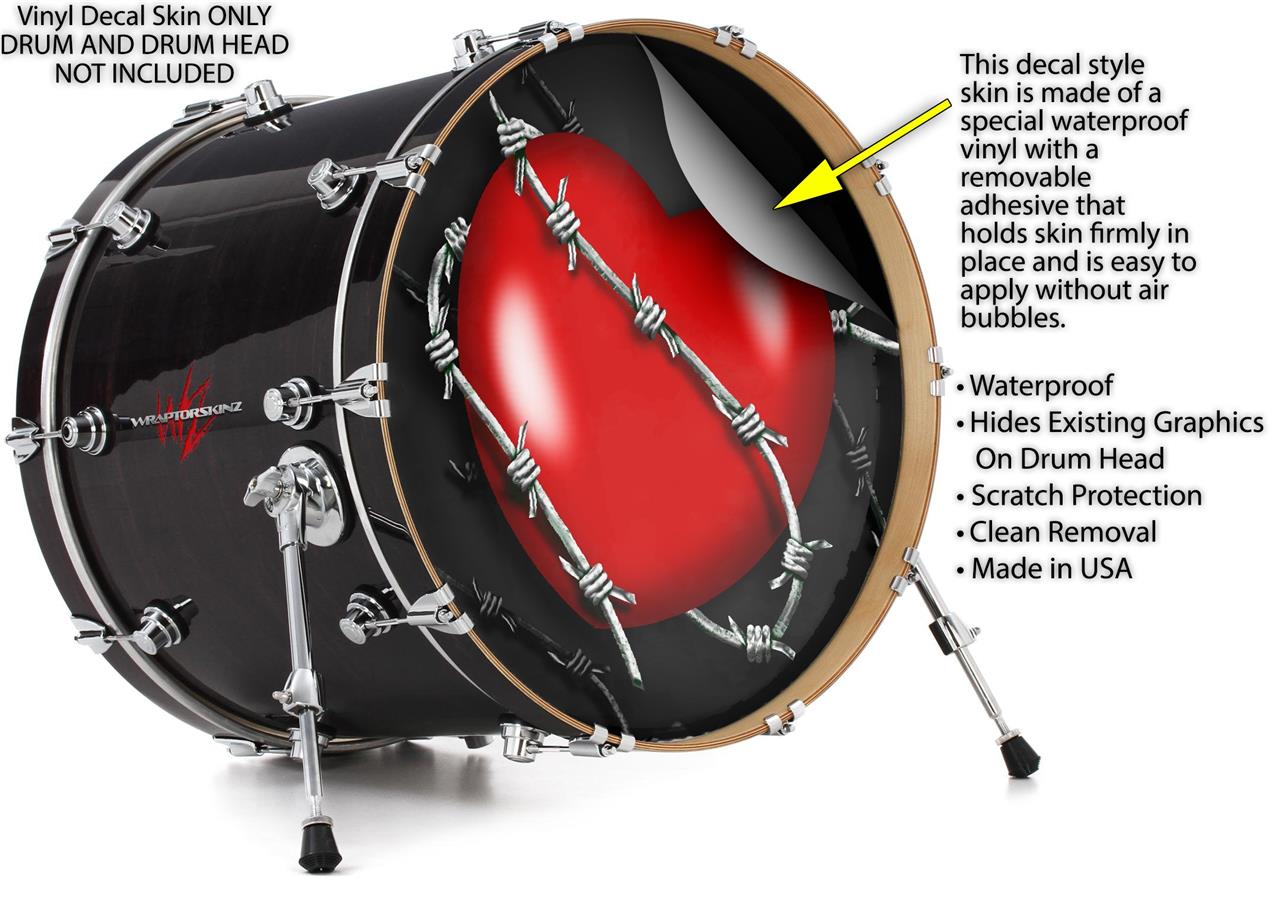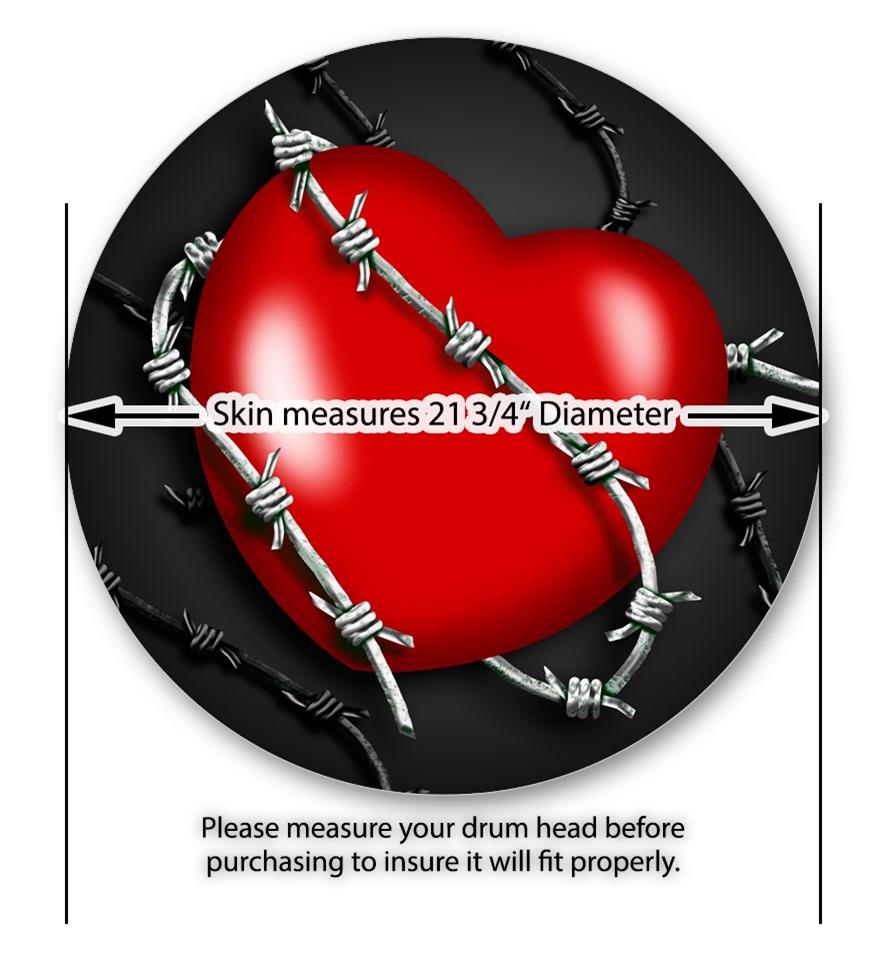 Vinyl Decal Skin Wrap for 22" Bass Kick Drum Head Barbwire Heart Red - DRUM HEAD NOT INCLUDED