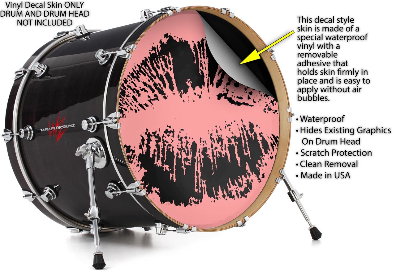Vinyl Decal Skin Wrap for 22" Bass Kick Drum Head Big Kiss Black on Pink - DRUM HEAD NOT INCLUDED
