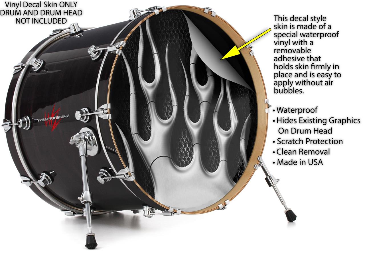Vinyl Decal Skin Wrap for 22" Bass Kick Drum Head Metal Flames Chrome - DRUM HEAD NOT INCLUDED