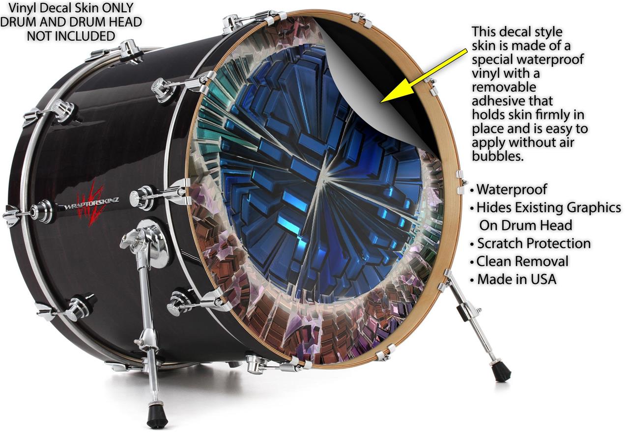 This design also available in other sizes. WraptorSkinz® skin wraps compatible with most kick drum heads. Printed using superb photo quality designs and vibrant colors printed with special fade resistant inks that last even in direct sun for years. WraptorSkinz are a composite three layer commercial grade materials vinyl. The bottom layer is a air release, grey block out removable adhesive that hides existing graphics on the drum head and is easily applied without air bubbles. The middle layer is a flexible vinyl printed with UV protected, fade resistant inks that deliver superb photo quality designs in vibrant colors. Finally, we bond a professional grade laminate over the entire skin adding a glossy protective finish.