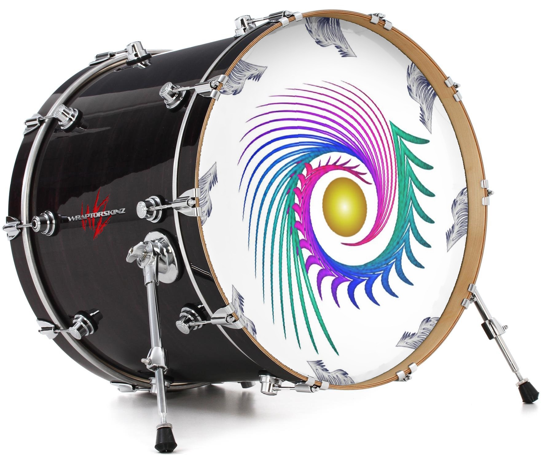 This design also available in other sizes. WraptorSkinz® skin wraps compatible with most kick drum heads. Printed using superb photo quality designs and vibrant colors printed with special fade resistant inks that last even in direct sun for years. WraptorSkinz are a composite three layer commercial grade materials vinyl. The bottom layer is a air release, grey block out removable adhesive that hides existing graphics on the drum head and is easily applied without air bubbles. The middle layer is a flexible vinyl printed with UV protected, fade resistant inks that deliver superb photo quality designs in vibrant colors. Finally, we bond a professional grade laminate over the entire skin adding a glossy protective finish.