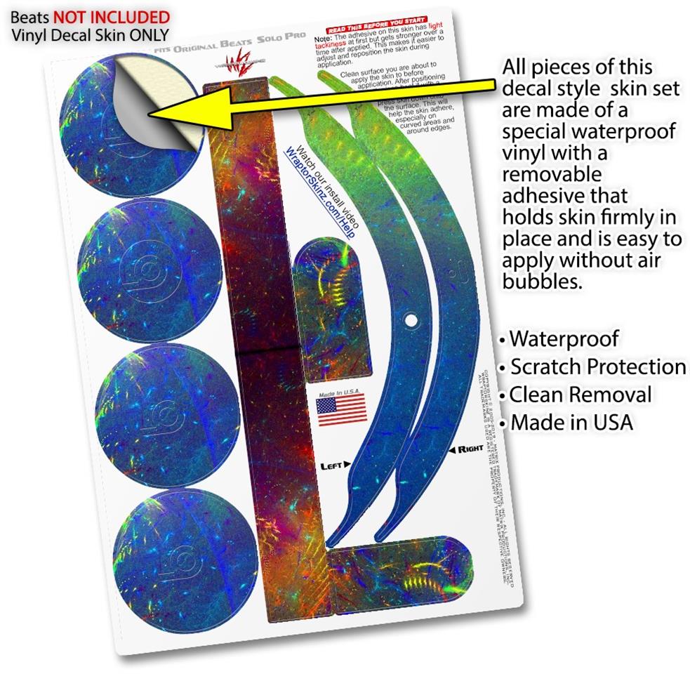 This product is in no way affiliated with or endorsed by Apple or Beats brand products. WraptorSkinz® skin wraps work with the Original Beats Solo Pro version 1 headphones. Printed using superb photo quality designs and vibrant colors printed with special fade resistant inks that last even in direct sun for years. WraptorSkinz are a composite of two layers of commercial grade materials. The bottom layer is a soft, flexible vinyl with a special removable adhesive that is easily positioned, applied without air bubbles. Next, we print the bottom layer with UV protected, fade resistant inks that deliver superb photo quality designs in vibrant colors. Finally, we bond a professional grade laminate over the entire skin adding a glossy protective finish.