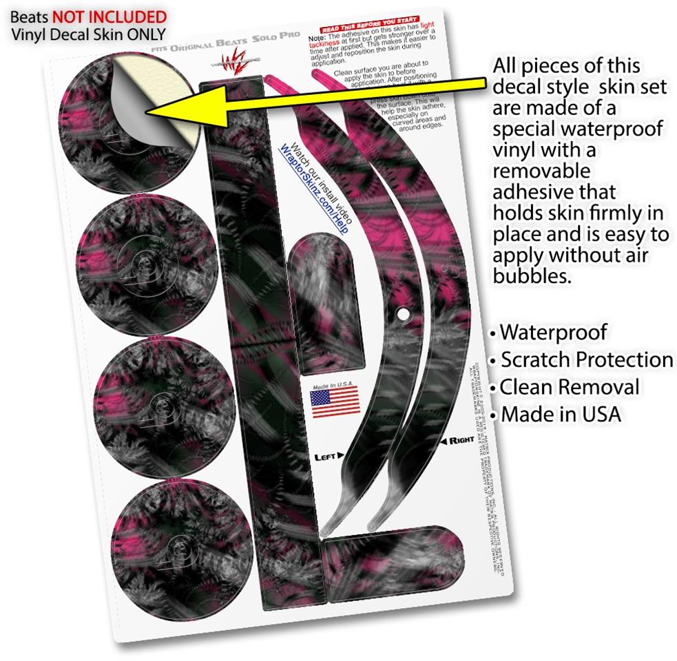 This product is in no way affiliated with or endorsed by Apple or Beats brand products. WraptorSkinz® skin wraps work with the Original Beats Solo Pro version 1 headphones. Printed using superb photo quality designs and vibrant colors printed with special fade resistant inks that last even in direct sun for years. WraptorSkinz are a composite of two layers of commercial grade materials. The bottom layer is a soft, flexible vinyl with a special removable adhesive that is easily positioned, applied without air bubbles. Next, we print the bottom layer with UV protected, fade resistant inks that deliver superb photo quality designs in vibrant colors. Finally, we bond a professional grade laminate over the entire skin adding a glossy protective finish.