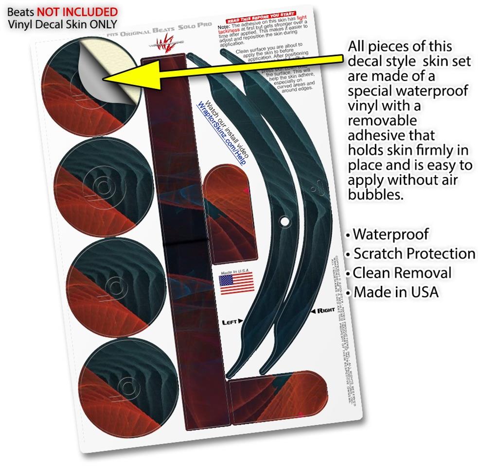 This product is in no way affiliated with or endorsed by Apple or Beats brand products. WraptorSkinz® skin wraps work with the Original Beats Solo Pro version 1 headphones. Printed using superb photo quality designs and vibrant colors printed with special fade resistant inks that last even in direct sun for years. WraptorSkinz are a composite of two layers of commercial grade materials. The bottom layer is a soft, flexible vinyl with a special removable adhesive that is easily positioned, applied without air bubbles. Next, we print the bottom layer with UV protected, fade resistant inks that deliver superb photo quality designs in vibrant colors. Finally, we bond a professional grade laminate over the entire skin adding a glossy protective finish.