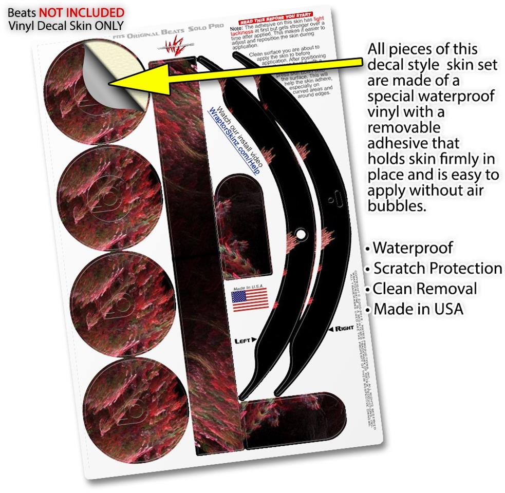 This product is in no way affiliated with or endorsed by Apple or Beats brand products. WraptorSkinz® skin wraps work with the Original Beats Solo Pro version 1 headphones. Printed using superb photo quality designs and vibrant colors printed with special fade resistant inks that last even in direct sun for years. WraptorSkinz are a composite of two layers of commercial grade materials. The bottom layer is a soft, flexible vinyl with a special removable adhesive that is easily positioned, applied without air bubbles. Next, we print the bottom layer with UV protected, fade resistant inks that deliver superb photo quality designs in vibrant colors. Finally, we bond a professional grade laminate over the entire skin adding a glossy protective finish.