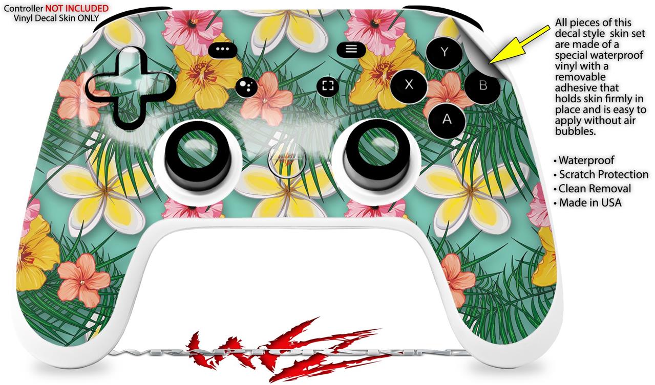 Skin Decal Wrap works with Original Google Stadia Controller Beach Flowers 02 Seafoam Green Skin Only CONTROLLER NOT INCLUDED