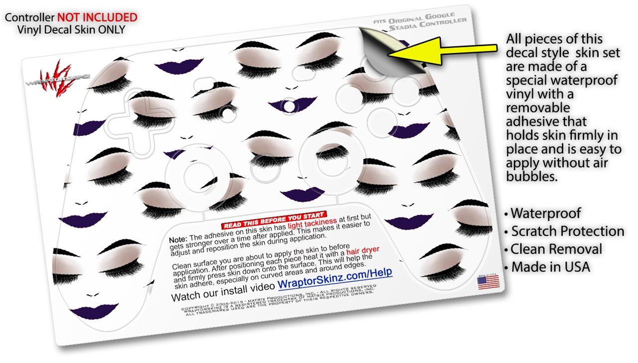 This product is in no way affiliated with or endorsed by Google. WraptorSkinz® skin wraps work with the Original Google Stadia version 1 Controller. Printed using superb photo quality designs and vibrant colors printed with special fade resistant inks that last even in direct sun for years. WraptorSkinz are a composite of two layers of commercial grade materials. The bottom layer is a soft, flexible vinyl with a special removable adhesive that is easily positioned, applied without air bubbles. Next, we print the bottom layer with UV protected, fade resistant inks that deliver superb photo quality designs in vibrant colors. Finally, we bond a professional grade laminate over the entire skin adding a glossy protective finish.