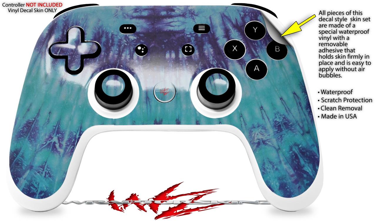 Skin Decal Wrap works with Original Google Stadia Controller Tie Dye Blue Stripes Skin Only CONTROLLER NOT INCLUDED