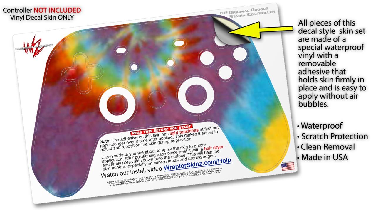Skin Decal Wrap works with Original Google Stadia Controller Tie Dye Swirl 108 Skin Only CONTROLLER NOT INCLUDED