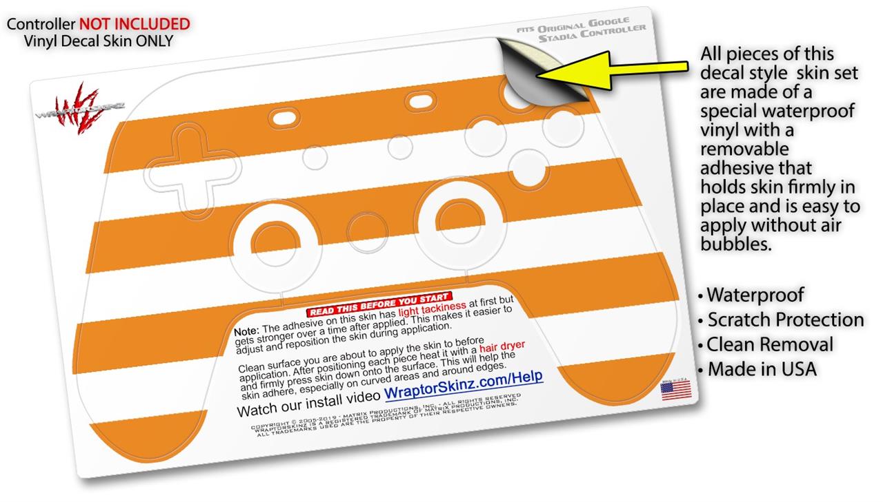 Skin Decal Wrap works with Original Google Stadia Controller Psycho Stripes Orange and White Skin Only CONTROLLER NOT INCLUDED