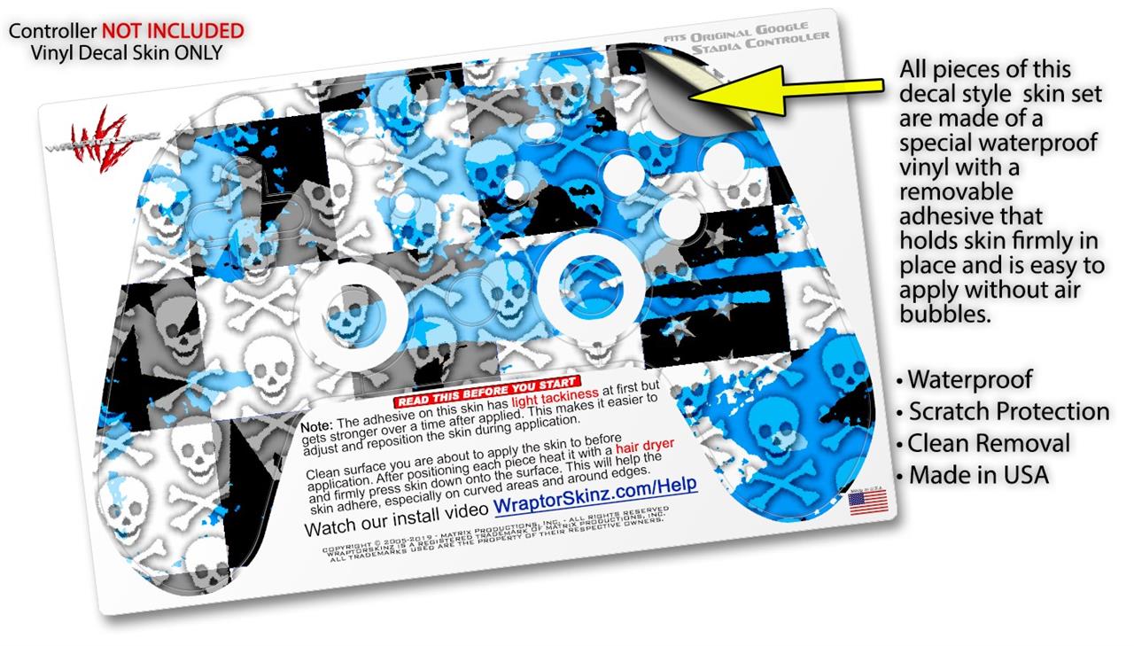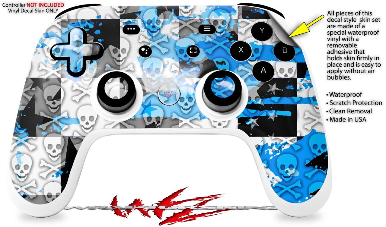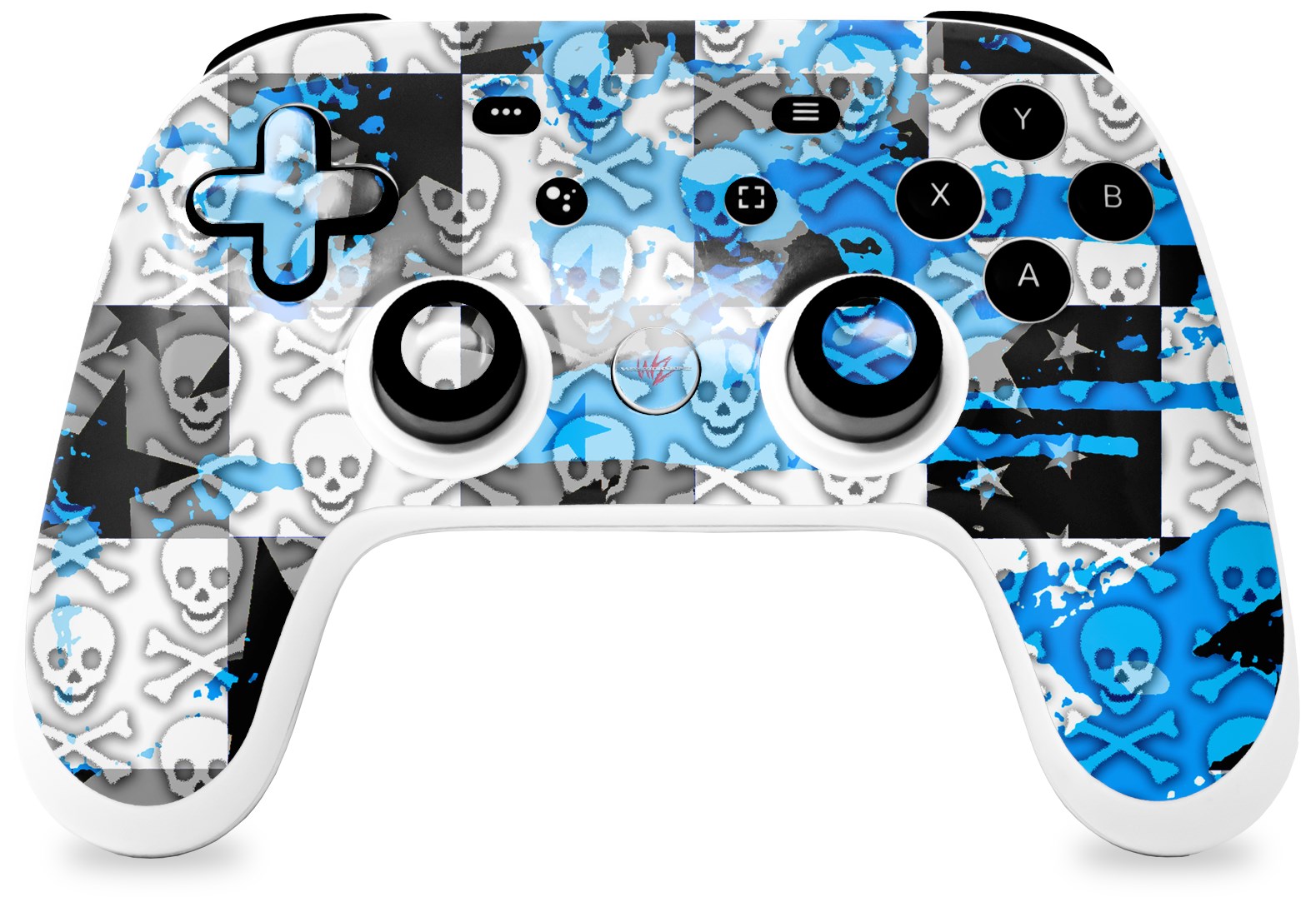 Skin Decal Wrap works with Original Google Stadia Controller Checker Skull Splatter Blue Skin Only CONTROLLER NOT INCLUDED