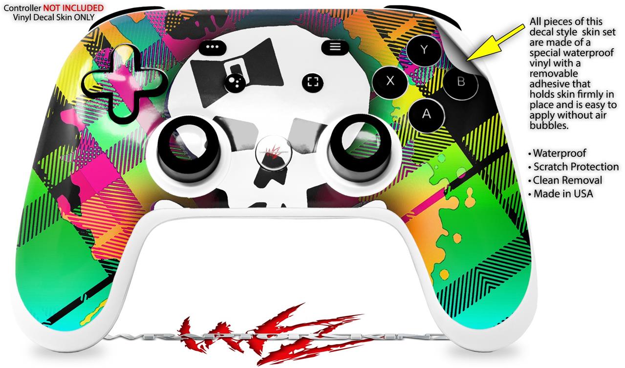 Skin Decal Wrap works with Original Google Stadia Controller Rainbow Plaid Skull Skin Only CONTROLLER NOT INCLUDED