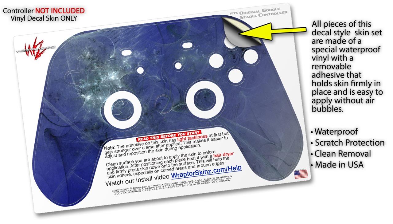 This product is in no way affiliated with or endorsed by Google. WraptorSkinz® skin wraps work with the Original Google Stadia version 1 Controller. Printed using superb photo quality designs and vibrant colors printed with special fade resistant inks that last even in direct sun for years. WraptorSkinz are a composite of two layers of commercial grade materials. The bottom layer is a soft, flexible vinyl with a special removable adhesive that is easily positioned, applied without air bubbles. Next, we print the bottom layer with UV protected, fade resistant inks that deliver superb photo quality designs in vibrant colors. Finally, we bond a professional grade laminate over the entire skin adding a glossy protective finish.