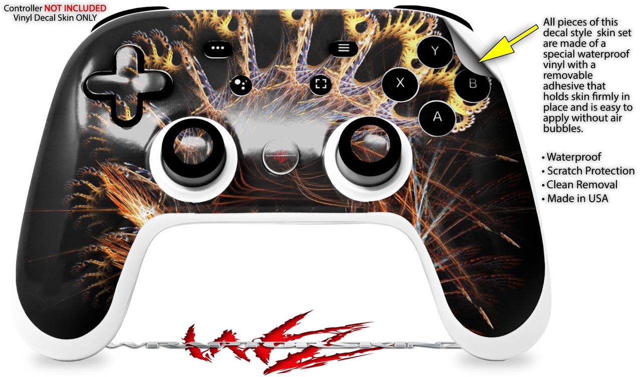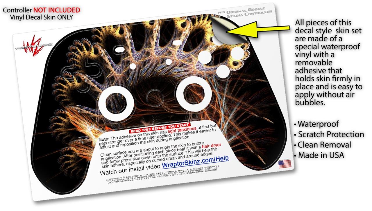 This product is in no way affiliated with or endorsed by Google. WraptorSkinz® skin wraps work with the Original Google Stadia version 1 Controller. Printed using superb photo quality designs and vibrant colors printed with special fade resistant inks that last even in direct sun for years. WraptorSkinz are a composite of two layers of commercial grade materials. The bottom layer is a soft, flexible vinyl with a special removable adhesive that is easily positioned, applied without air bubbles. Next, we print the bottom layer with UV protected, fade resistant inks that deliver superb photo quality designs in vibrant colors. Finally, we bond a professional grade laminate over the entire skin adding a glossy protective finish.
