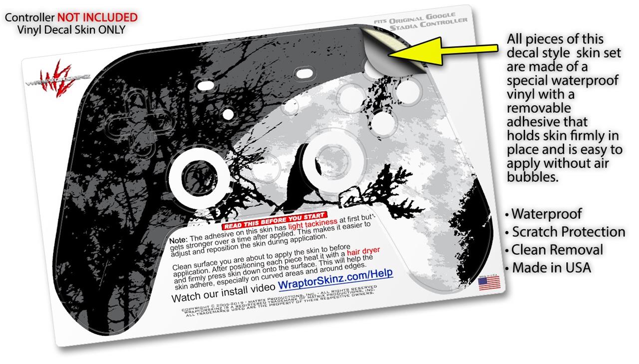 This product is in no way affiliated with or endorsed by Google. WraptorSkinz® skin wraps work with the Original Google Stadia version 1 Controller. Printed using superb photo quality designs and vibrant colors printed with special fade resistant inks that last even in direct sun for years. WraptorSkinz are a composite of two layers of commercial grade materials. The bottom layer is a soft, flexible vinyl with a special removable adhesive that is easily positioned, applied without air bubbles. Next, we print the bottom layer with UV protected, fade resistant inks that deliver superb photo quality designs in vibrant colors. Finally, we bond a professional grade laminate over the entire skin adding a glossy protective finish.