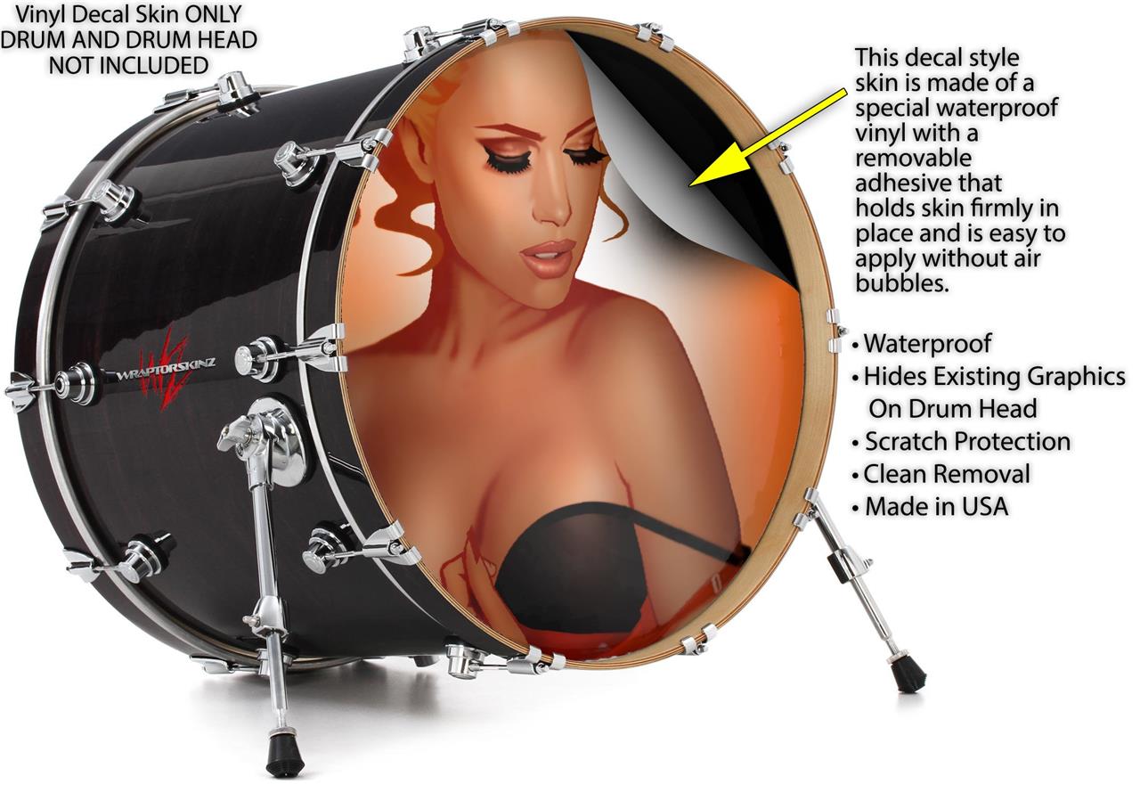 Decal Skin works with most 24" Bass Kick Drum Heads 0range Pin Up Girl - DRUM HEAD NOT INCLUDED