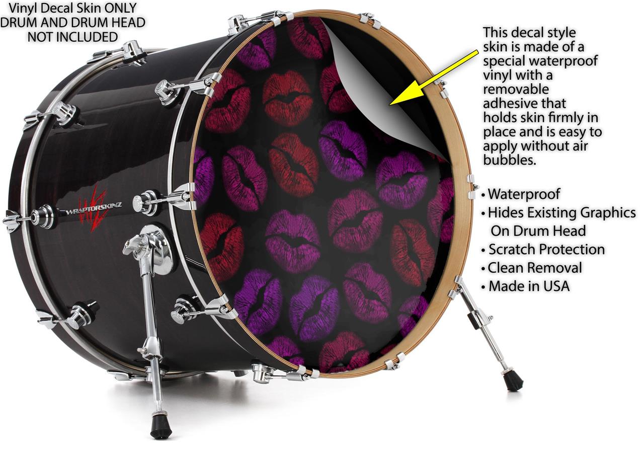 Decal Skin works with most 24" Bass Kick Drum Heads Red Pink And Black Lips - DRUM HEAD NOT INCLUDED