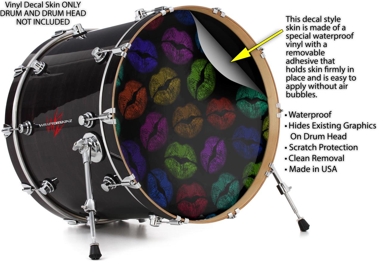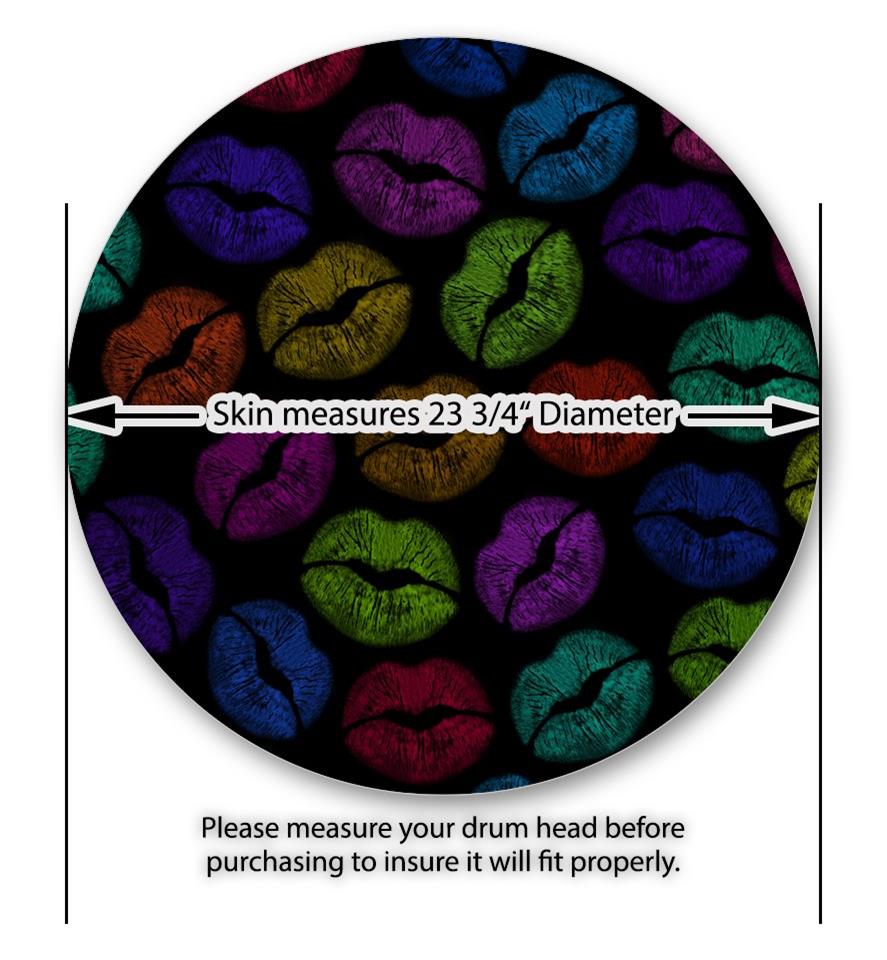 Decal Skin works with most 24" Bass Kick Drum Heads Rainbow Lips Black - DRUM HEAD NOT INCLUDED