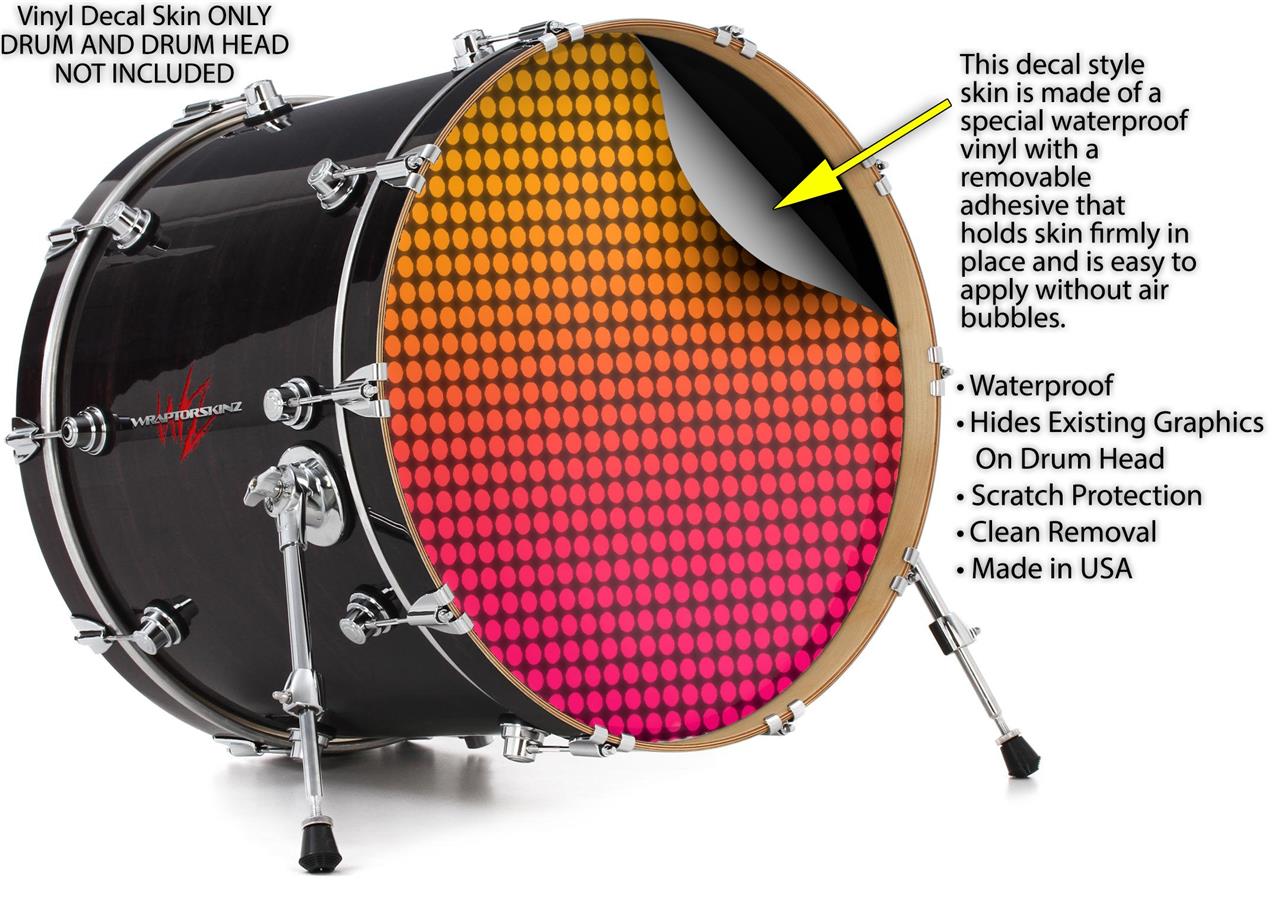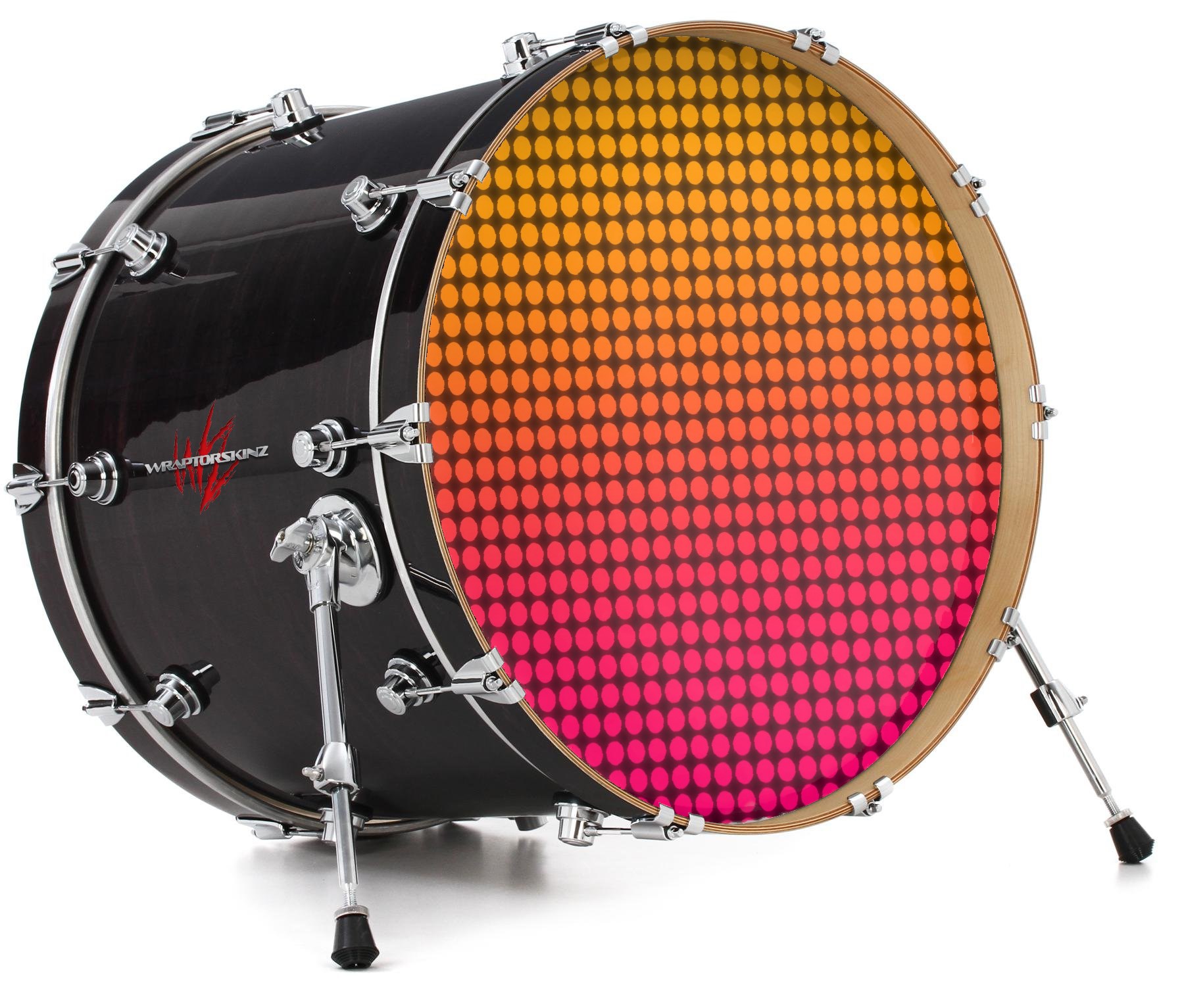 Decal Skin works with most 24" Bass Kick Drum Heads Faded Dots Hot Pink Orange - DRUM HEAD NOT INCLUDED