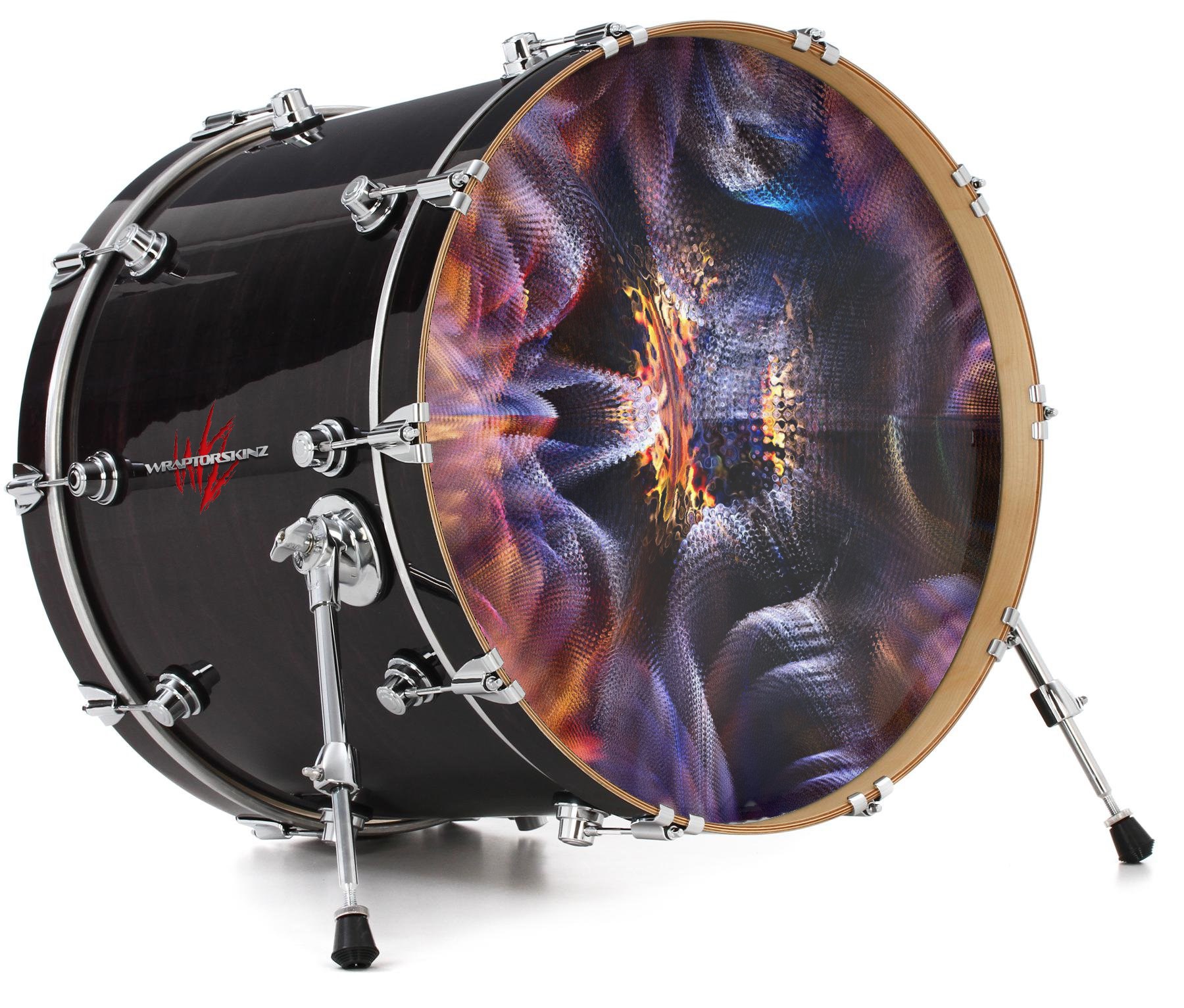 This design also available in other sizes. WraptorSkinz® skin wraps compatible with most kick drum heads. Printed using superb photo quality designs and vibrant colors printed with special fade resistant inks that last even in direct sun for years. WraptorSkinz are a composite three layer commercial grade materials vinyl. The bottom layer is a air release, grey block out removable adhesive that hides existing graphics on the drum head and is easily applied without air bubbles. The middle layer is a flexible vinyl printed with UV protected, fade resistant inks that deliver superb photo quality designs in vibrant colors. Finally, we bond a professional grade laminate over the entire skin adding a glossy protective finish.