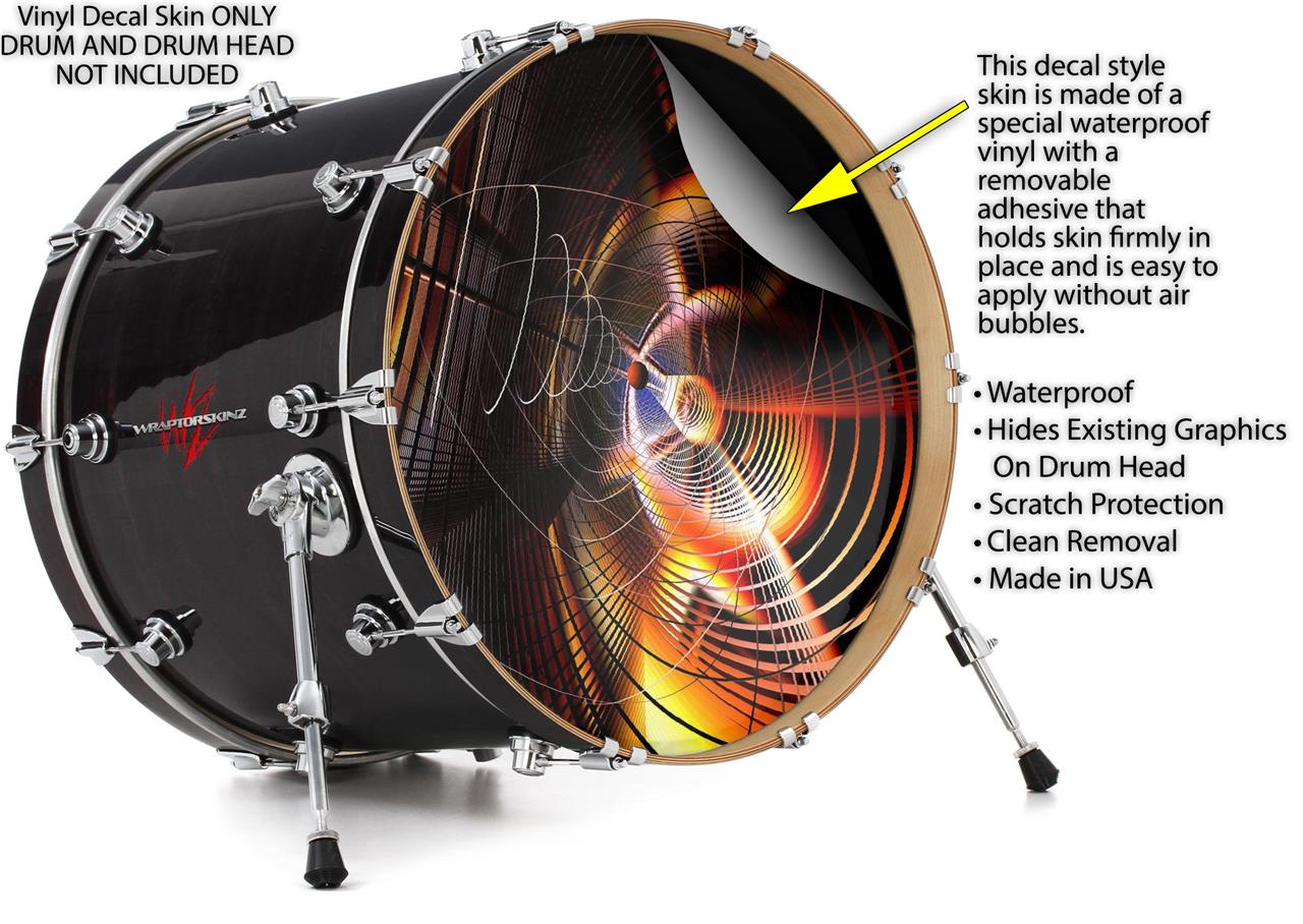This design also available in other sizes. WraptorSkinz® skin wraps compatible with most kick drum heads. Printed using superb photo quality designs and vibrant colors printed with special fade resistant inks that last even in direct sun for years. WraptorSkinz are a composite three layer commercial grade materials vinyl. The bottom layer is a air release, grey block out removable adhesive that hides existing graphics on the drum head and is easily applied without air bubbles. The middle layer is a flexible vinyl printed with UV protected, fade resistant inks that deliver superb photo quality designs in vibrant colors. Finally, we bond a professional grade laminate over the entire skin adding a glossy protective finish.