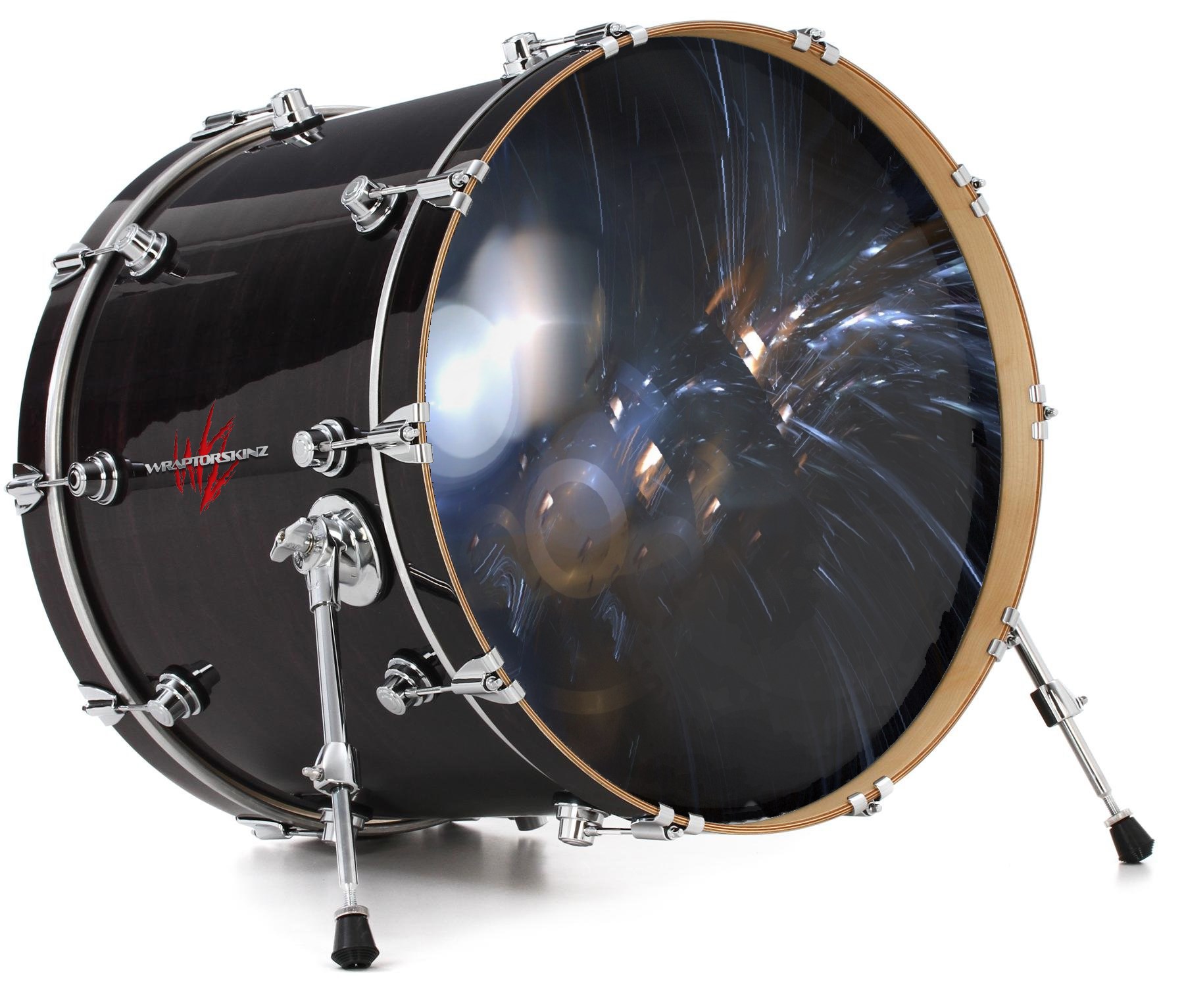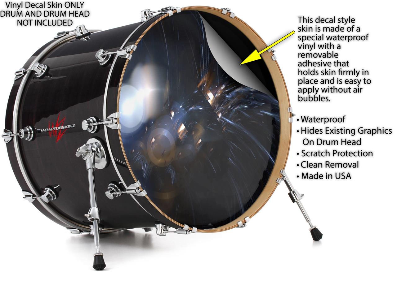 This design also available in other sizes. WraptorSkinz® skin wraps compatible with most kick drum heads. Printed using superb photo quality designs and vibrant colors printed with special fade resistant inks that last even in direct sun for years. WraptorSkinz are a composite three layer commercial grade materials vinyl. The bottom layer is a air release, grey block out removable adhesive that hides existing graphics on the drum head and is easily applied without air bubbles. The middle layer is a flexible vinyl printed with UV protected, fade resistant inks that deliver superb photo quality designs in vibrant colors. Finally, we bond a professional grade laminate over the entire skin adding a glossy protective finish.