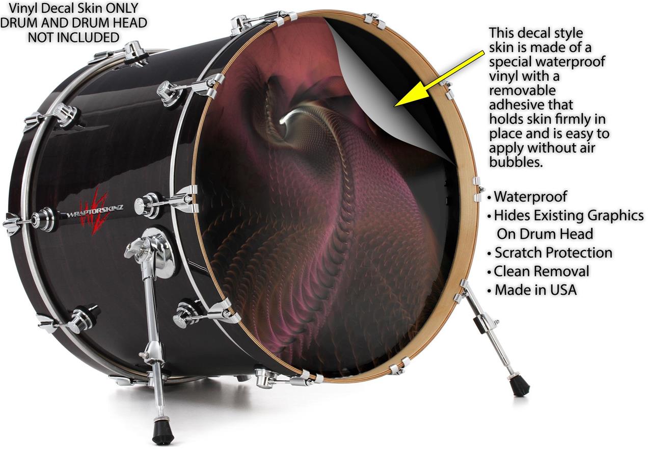 This design also available in other sizes. WraptorSkinz® skin wraps compatible with most kick drum heads. Printed using superb photo quality designs and vibrant colors printed with special fade resistant inks that last even in direct sun for years. WraptorSkinz are a composite three layer commercial grade materials vinyl. The bottom layer is a air release, grey block out removable adhesive that hides existing graphics on the drum head and is easily applied without air bubbles. The middle layer is a flexible vinyl printed with UV protected, fade resistant inks that deliver superb photo quality designs in vibrant colors. Finally, we bond a professional grade laminate over the entire skin adding a glossy protective finish.