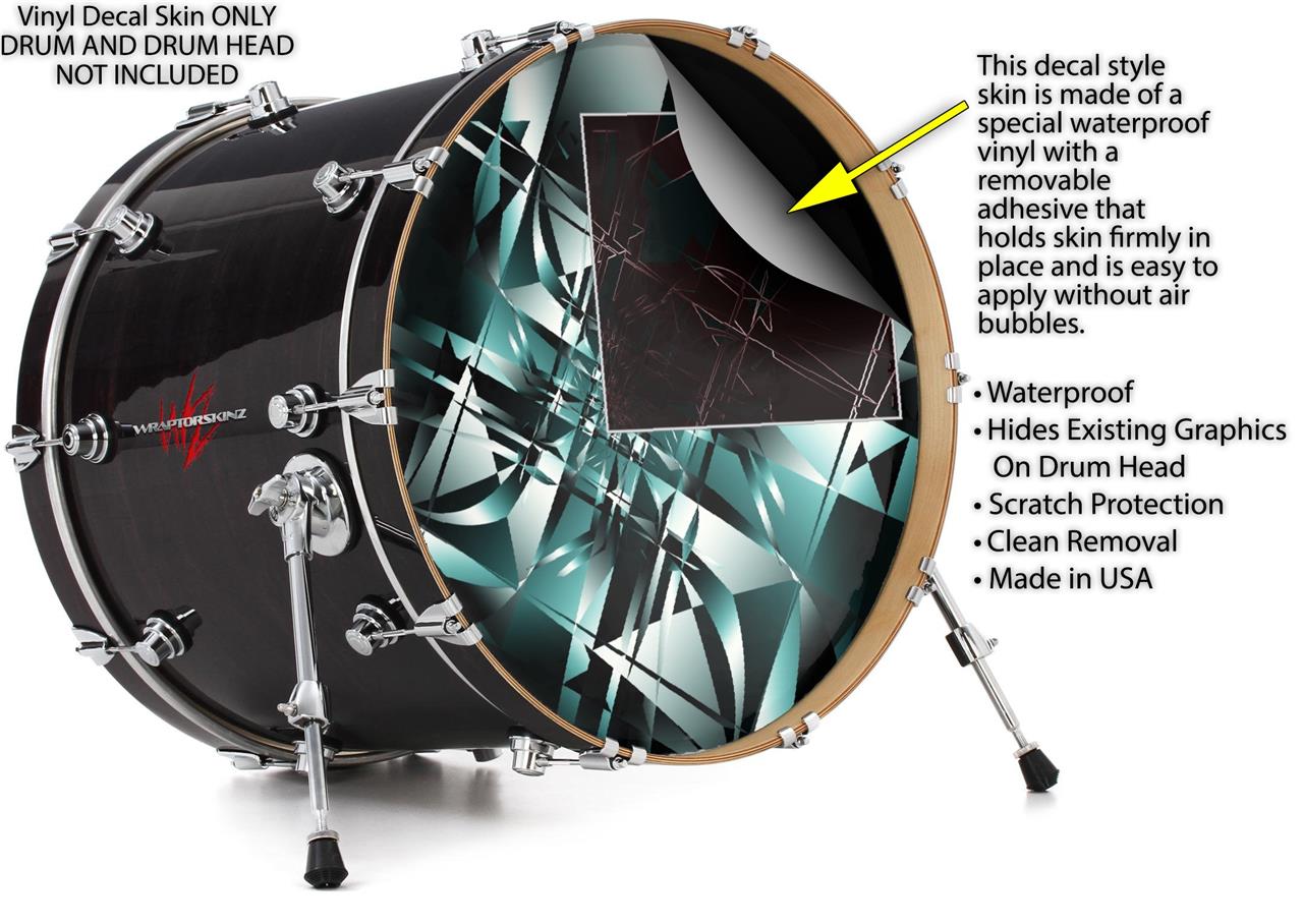 This design also available in other sizes. WraptorSkinz® skin wraps compatible with most kick drum heads. Printed using superb photo quality designs and vibrant colors printed with special fade resistant inks that last even in direct sun for years. WraptorSkinz are a composite three layer commercial grade materials vinyl. The bottom layer is a air release, grey block out removable adhesive that hides existing graphics on the drum head and is easily applied without air bubbles. The middle layer is a flexible vinyl printed with UV protected, fade resistant inks that deliver superb photo quality designs in vibrant colors. Finally, we bond a professional grade laminate over the entire skin adding a glossy protective finish.