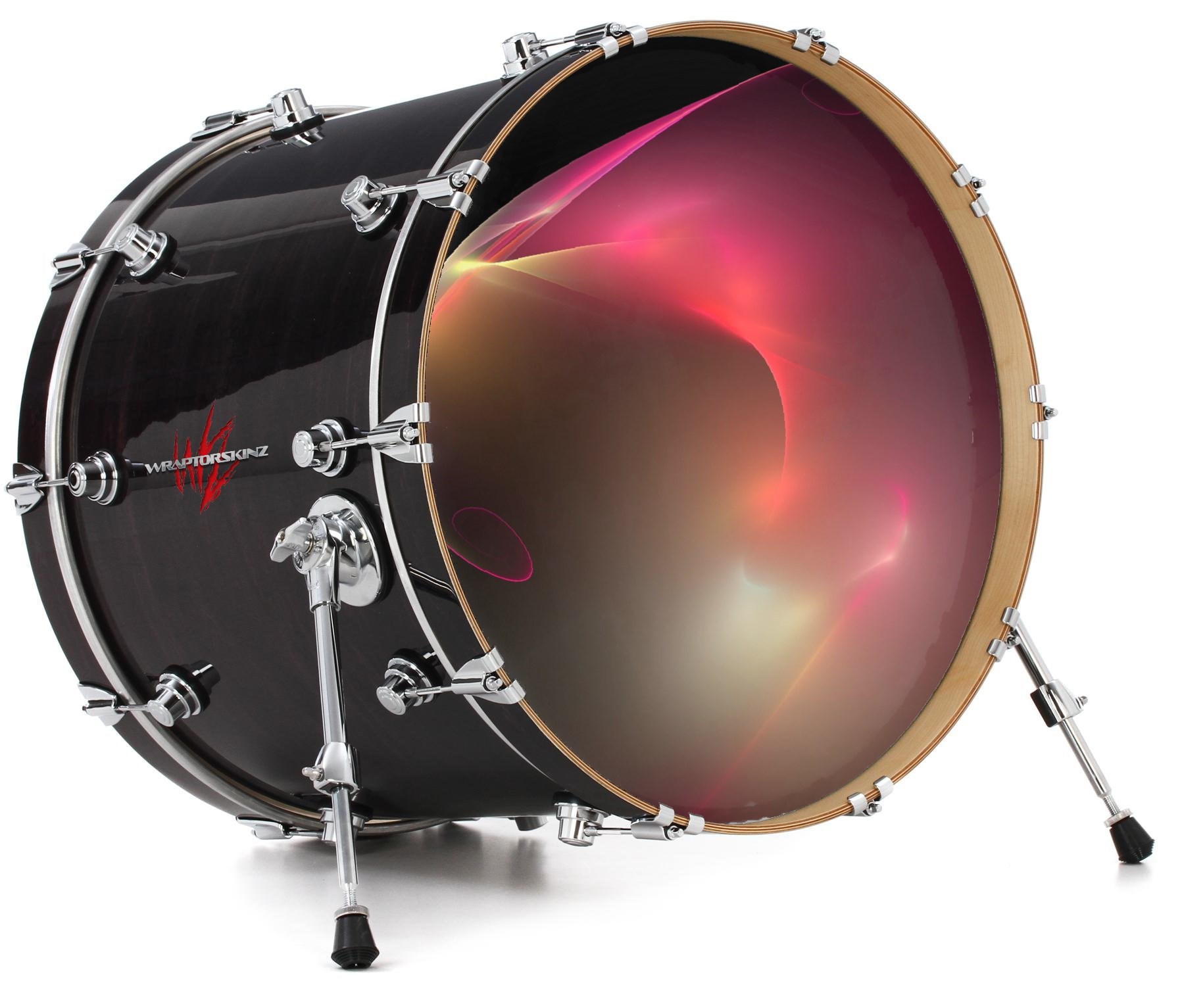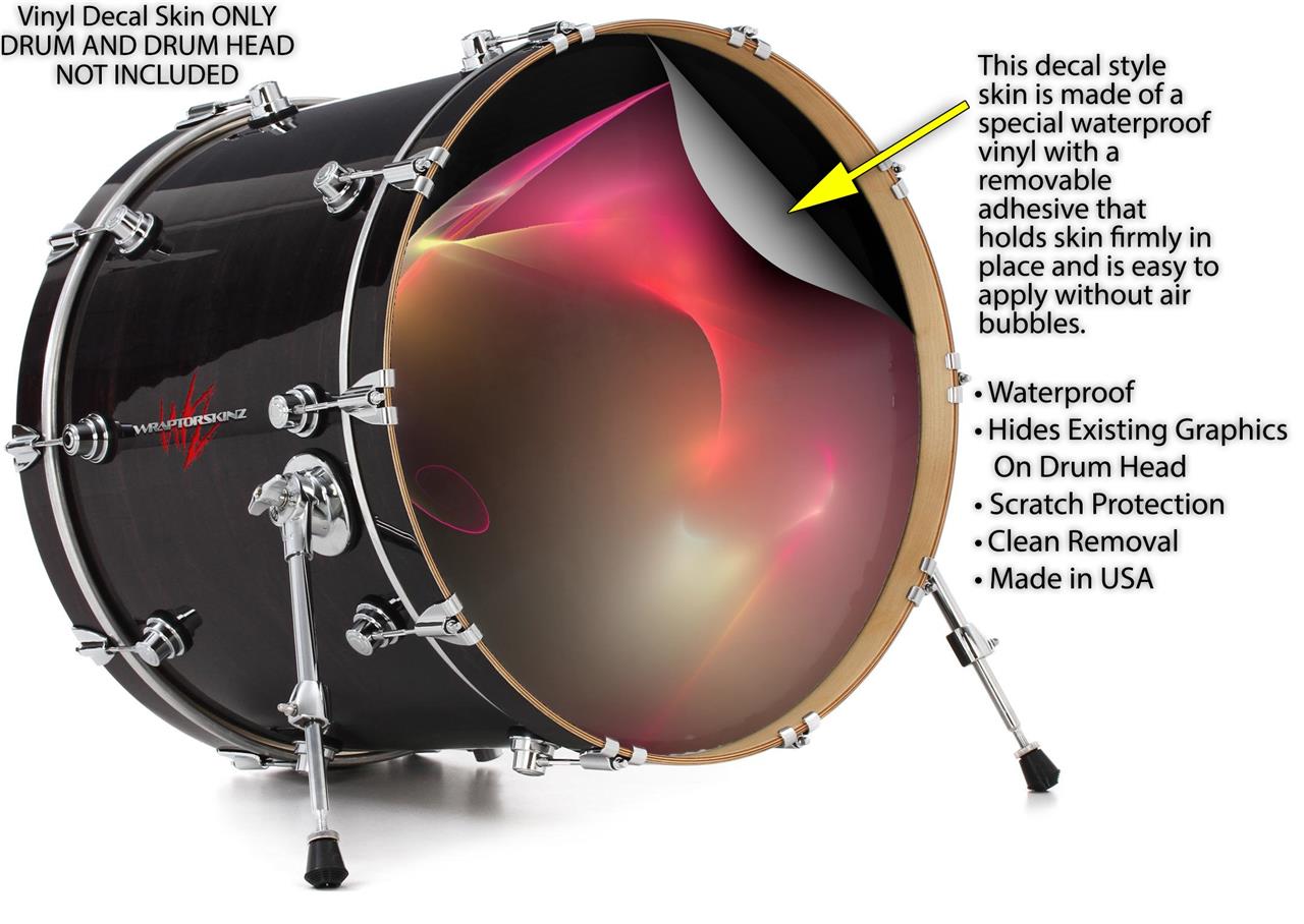 This design also available in other sizes. WraptorSkinz® skin wraps compatible with most kick drum heads. Printed using superb photo quality designs and vibrant colors printed with special fade resistant inks that last even in direct sun for years. WraptorSkinz are a composite three layer commercial grade materials vinyl. The bottom layer is a air release, grey block out removable adhesive that hides existing graphics on the drum head and is easily applied without air bubbles. The middle layer is a flexible vinyl printed with UV protected, fade resistant inks that deliver superb photo quality designs in vibrant colors. Finally, we bond a professional grade laminate over the entire skin adding a glossy protective finish.