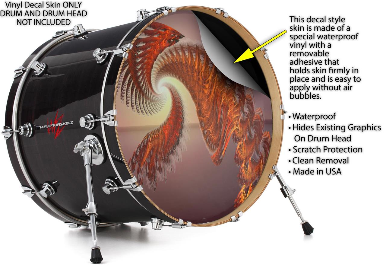 This design also available in other sizes. WraptorSkinz® skin wraps compatible with most kick drum heads. Printed using superb photo quality designs and vibrant colors printed with special fade resistant inks that last even in direct sun for years. WraptorSkinz are a composite three layer commercial grade materials vinyl. The bottom layer is a air release, grey block out removable adhesive that hides existing graphics on the drum head and is easily applied without air bubbles. The middle layer is a flexible vinyl printed with UV protected, fade resistant inks that deliver superb photo quality designs in vibrant colors. Finally, we bond a professional grade laminate over the entire skin adding a glossy protective finish.