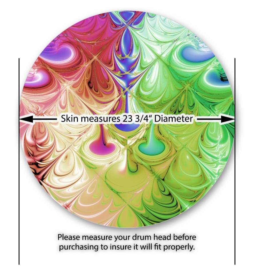 This design also available in other sizes. WraptorSkinz® skin wraps compatible with most kick drum heads. Printed using superb photo quality designs and vibrant colors printed with special fade resistant inks that last even in direct sun for years. WraptorSkinz are a composite three layer commercial grade materials vinyl. The bottom layer is a air release, grey block out removable adhesive that hides existing graphics on the drum head and is easily applied without air bubbles. The middle layer is a flexible vinyl printed with UV protected, fade resistant inks that deliver superb photo quality designs in vibrant colors. Finally, we bond a professional grade laminate over the entire skin adding a glossy protective finish.