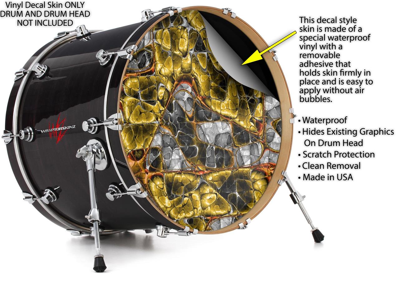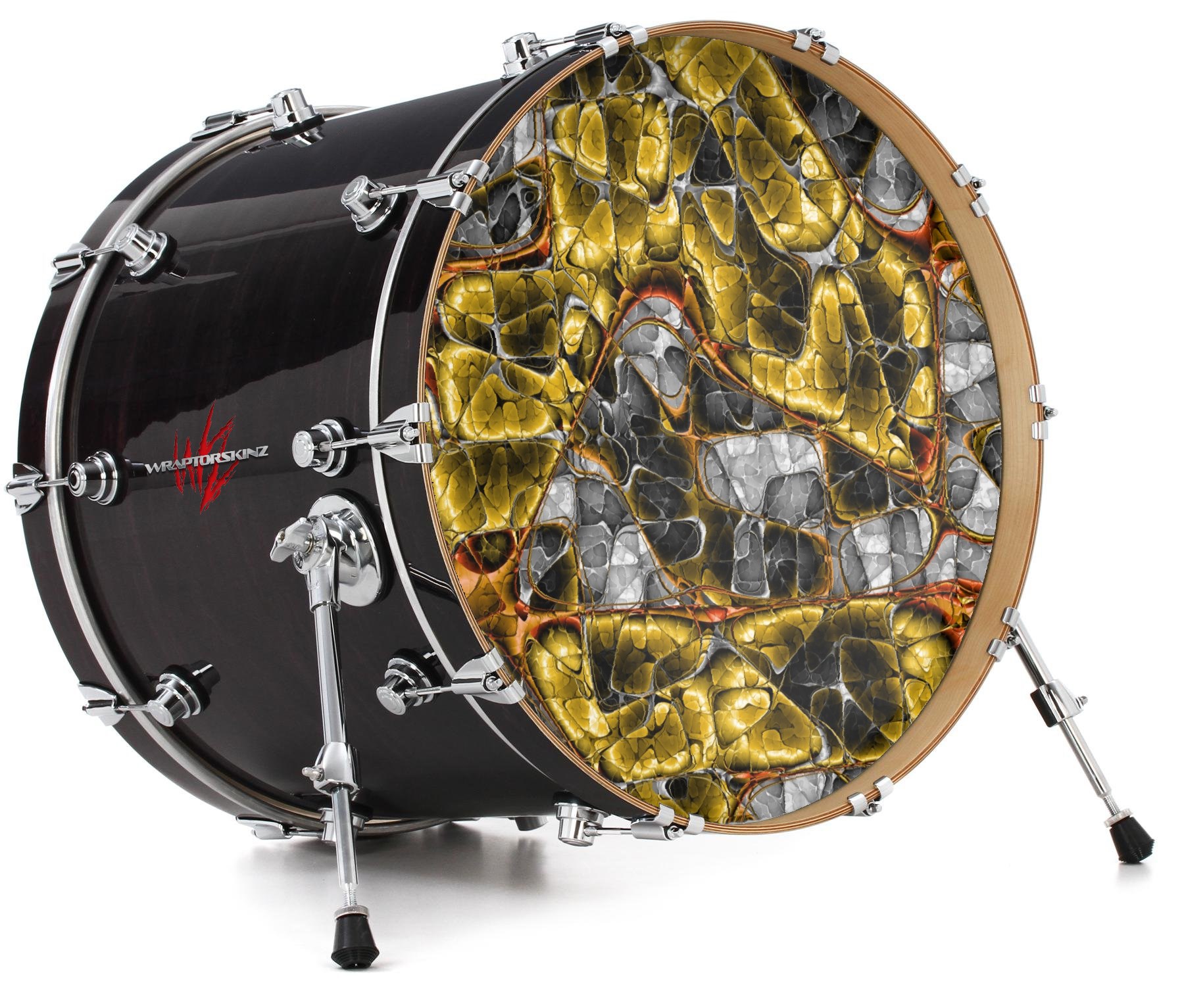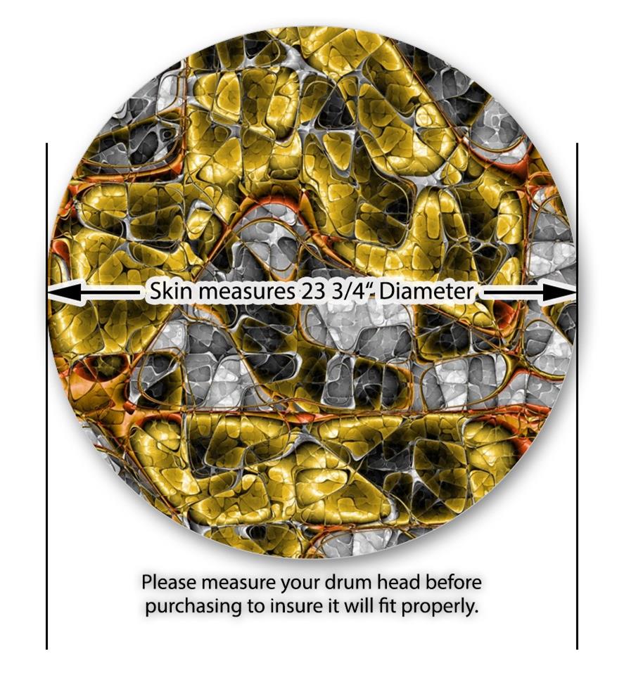 This design also available in other sizes. WraptorSkinz® skin wraps compatible with most kick drum heads. Printed using superb photo quality designs and vibrant colors printed with special fade resistant inks that last even in direct sun for years. WraptorSkinz are a composite three layer commercial grade materials vinyl. The bottom layer is a air release, grey block out removable adhesive that hides existing graphics on the drum head and is easily applied without air bubbles. The middle layer is a flexible vinyl printed with UV protected, fade resistant inks that deliver superb photo quality designs in vibrant colors. Finally, we bond a professional grade laminate over the entire skin adding a glossy protective finish.