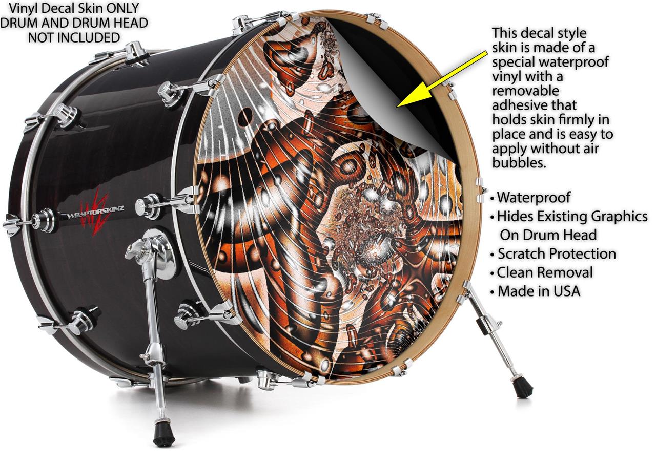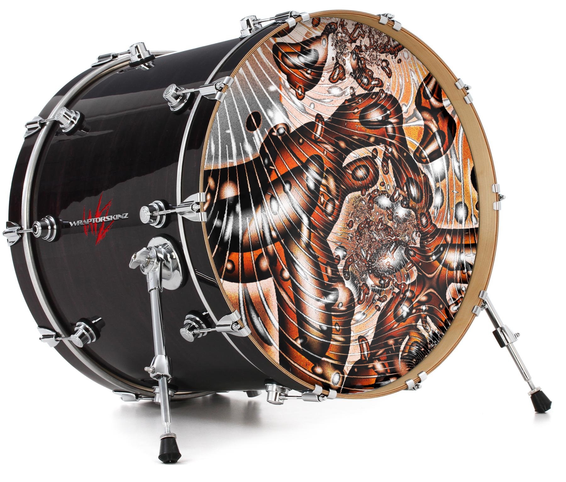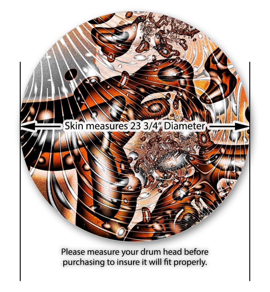 This design also available in other sizes. WraptorSkinz® skin wraps compatible with most kick drum heads. Printed using superb photo quality designs and vibrant colors printed with special fade resistant inks that last even in direct sun for years. WraptorSkinz are a composite three layer commercial grade materials vinyl. The bottom layer is a air release, grey block out removable adhesive that hides existing graphics on the drum head and is easily applied without air bubbles. The middle layer is a flexible vinyl printed with UV protected, fade resistant inks that deliver superb photo quality designs in vibrant colors. Finally, we bond a professional grade laminate over the entire skin adding a glossy protective finish.