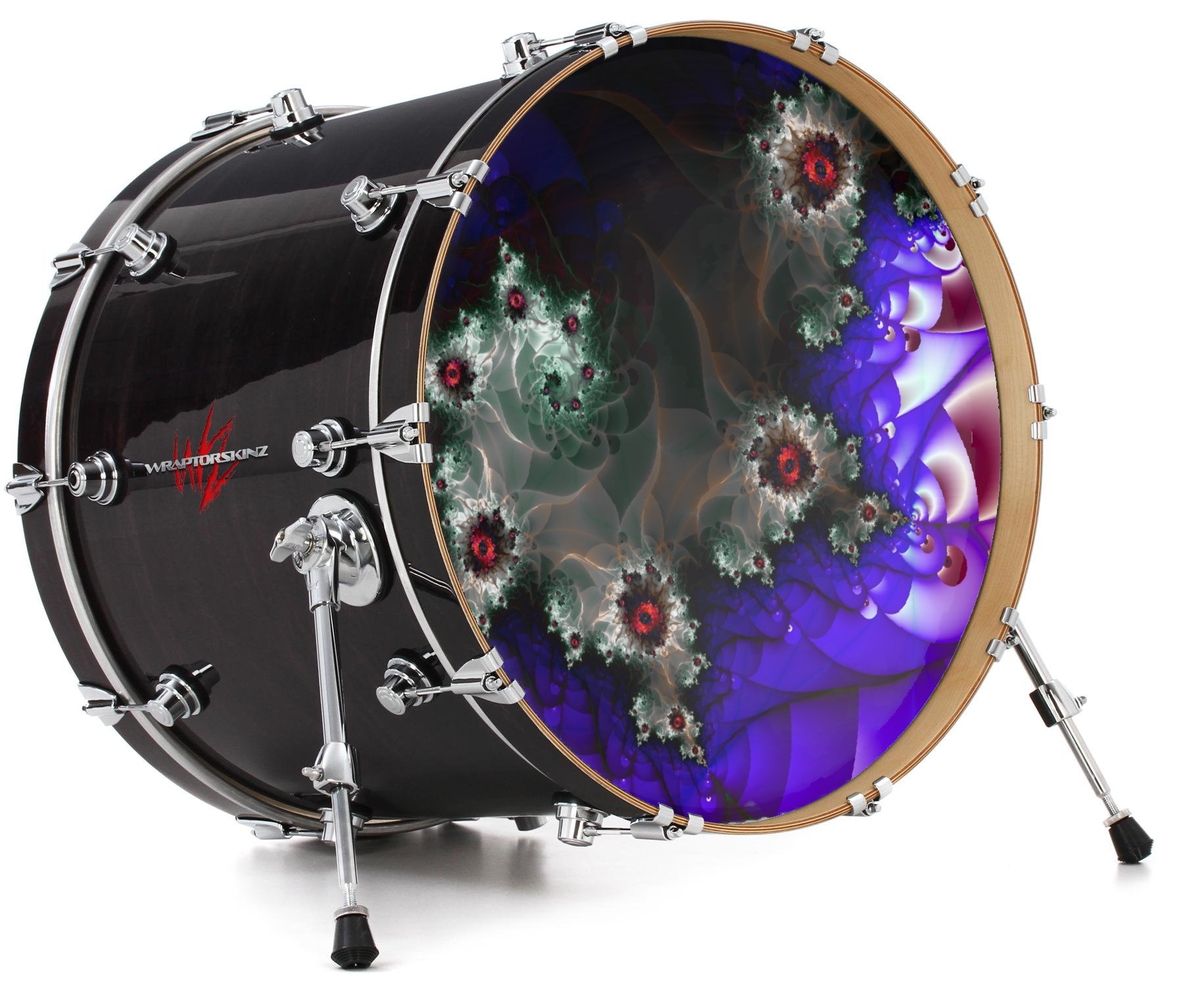This design also available in other sizes. WraptorSkinz® skin wraps compatible with most kick drum heads. Printed using superb photo quality designs and vibrant colors printed with special fade resistant inks that last even in direct sun for years. WraptorSkinz are a composite three layer commercial grade materials vinyl. The bottom layer is a air release, grey block out removable adhesive that hides existing graphics on the drum head and is easily applied without air bubbles. The middle layer is a flexible vinyl printed with UV protected, fade resistant inks that deliver superb photo quality designs in vibrant colors. Finally, we bond a professional grade laminate over the entire skin adding a glossy protective finish.