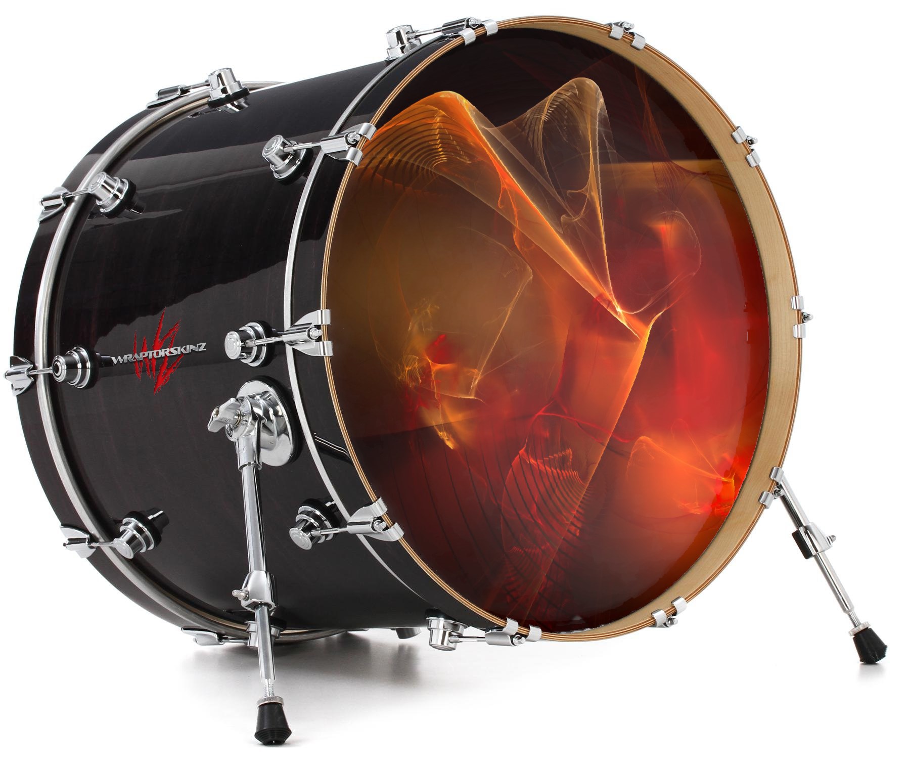 This design also available in other sizes. WraptorSkinz® skin wraps compatible with most kick drum heads. Printed using superb photo quality designs and vibrant colors printed with special fade resistant inks that last even in direct sun for years. WraptorSkinz are a composite three layer commercial grade materials vinyl. The bottom layer is a air release, grey block out removable adhesive that hides existing graphics on the drum head and is easily applied without air bubbles. The middle layer is a flexible vinyl printed with UV protected, fade resistant inks that deliver superb photo quality designs in vibrant colors. Finally, we bond a professional grade laminate over the entire skin adding a glossy protective finish.