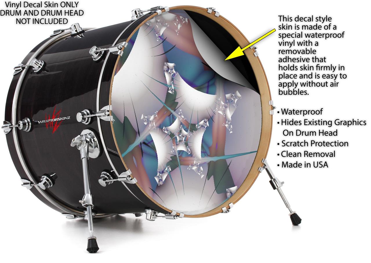 This design also available in other sizes. WraptorSkinz® skin wraps compatible with most kick drum heads. Printed using superb photo quality designs and vibrant colors printed with special fade resistant inks that last even in direct sun for years. WraptorSkinz are a composite three layer commercial grade materials vinyl. The bottom layer is a air release, grey block out removable adhesive that hides existing graphics on the drum head and is easily applied without air bubbles. The middle layer is a flexible vinyl printed with UV protected, fade resistant inks that deliver superb photo quality designs in vibrant colors. Finally, we bond a professional grade laminate over the entire skin adding a glossy protective finish.
