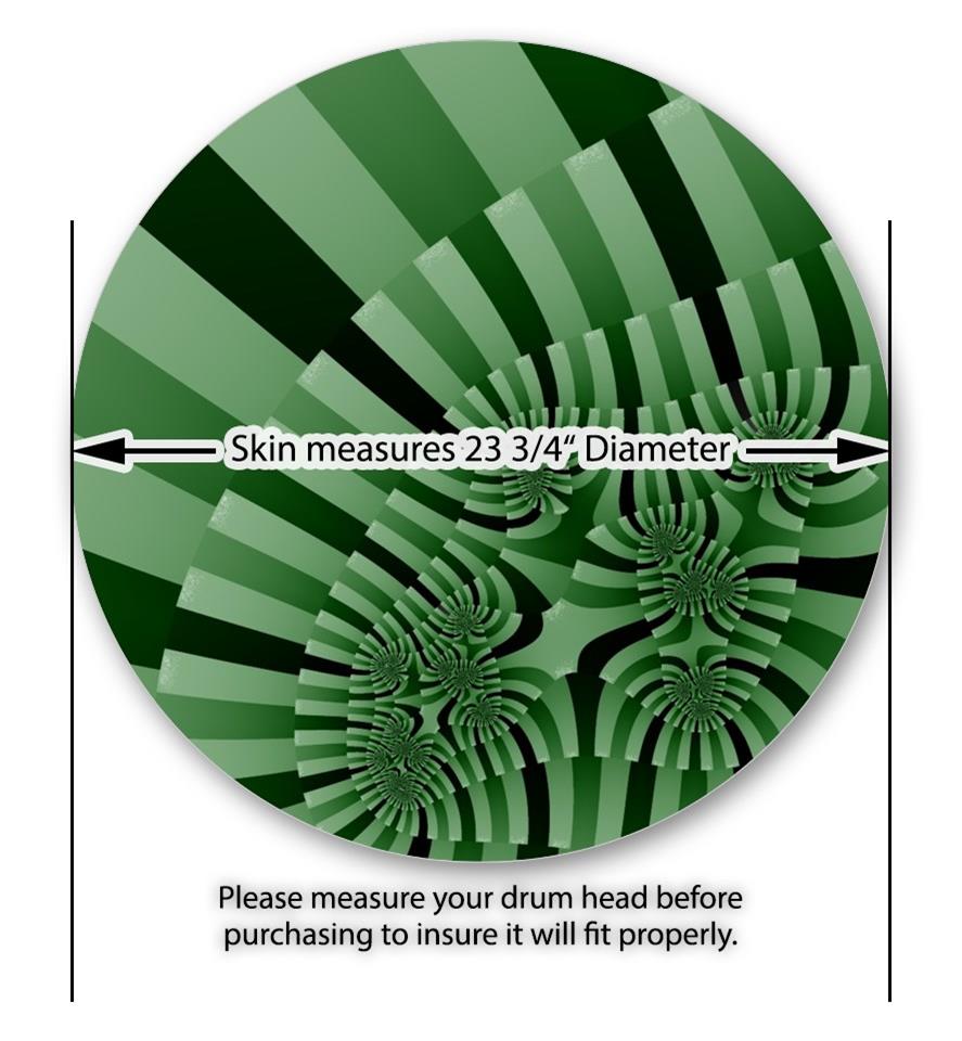 This design also available in other sizes. WraptorSkinz® skin wraps compatible with most kick drum heads. Printed using superb photo quality designs and vibrant colors printed with special fade resistant inks that last even in direct sun for years. WraptorSkinz are a composite three layer commercial grade materials vinyl. The bottom layer is a air release, grey block out removable adhesive that hides existing graphics on the drum head and is easily applied without air bubbles. The middle layer is a flexible vinyl printed with UV protected, fade resistant inks that deliver superb photo quality designs in vibrant colors. Finally, we bond a professional grade laminate over the entire skin adding a glossy protective finish.